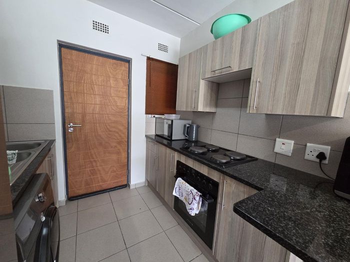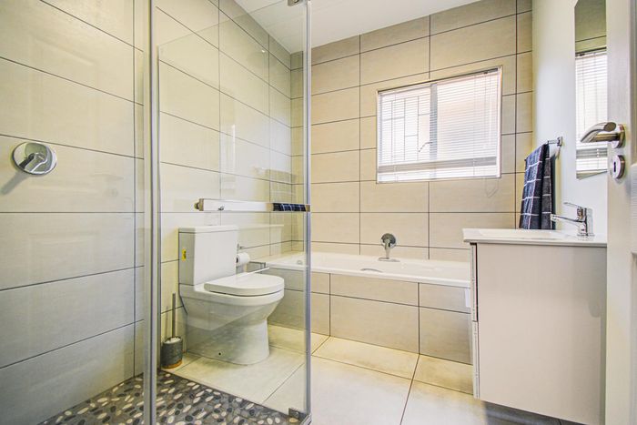 Relax in central Benoni living close to amenities and transport, with an airy open-plan interior, large private balcony and communal pool/braai — two bedrooms, two bathrooms.