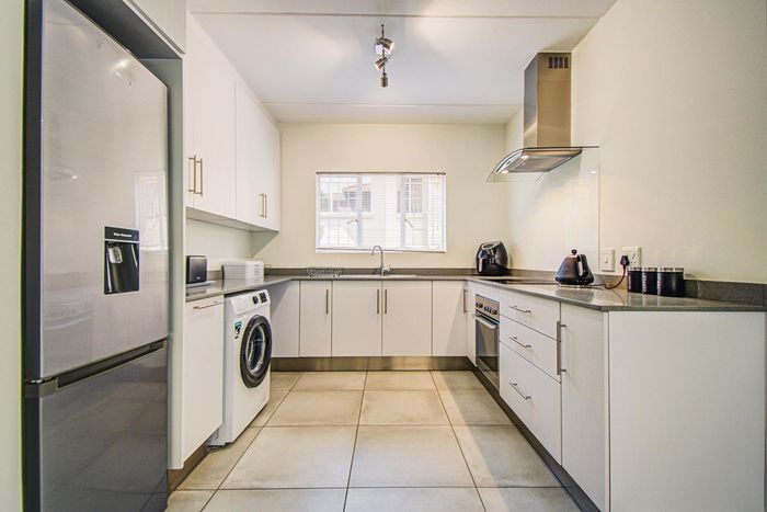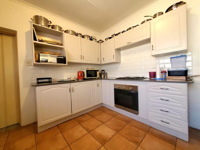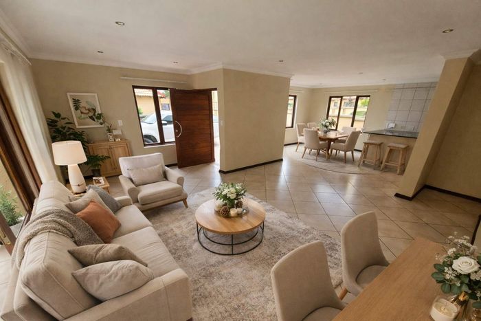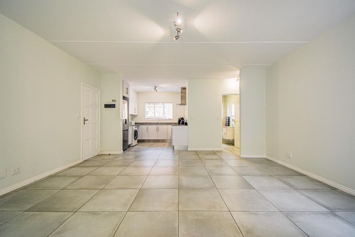 Relaxed, secure family living in Constantia Park, Goedeburg — open-plan kitchen and heated lounge opening to private garden. Three beds, two baths, single garage.