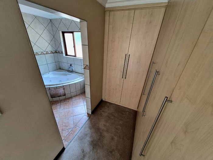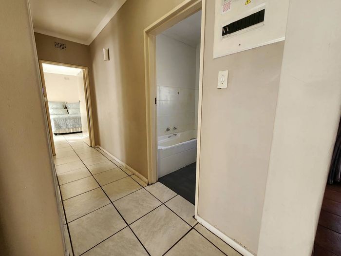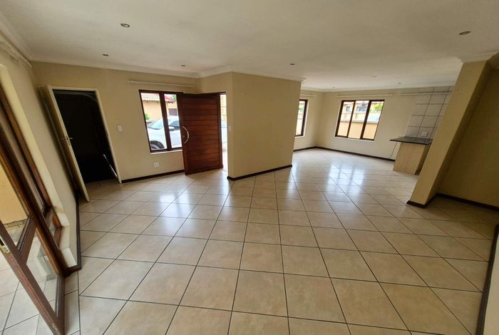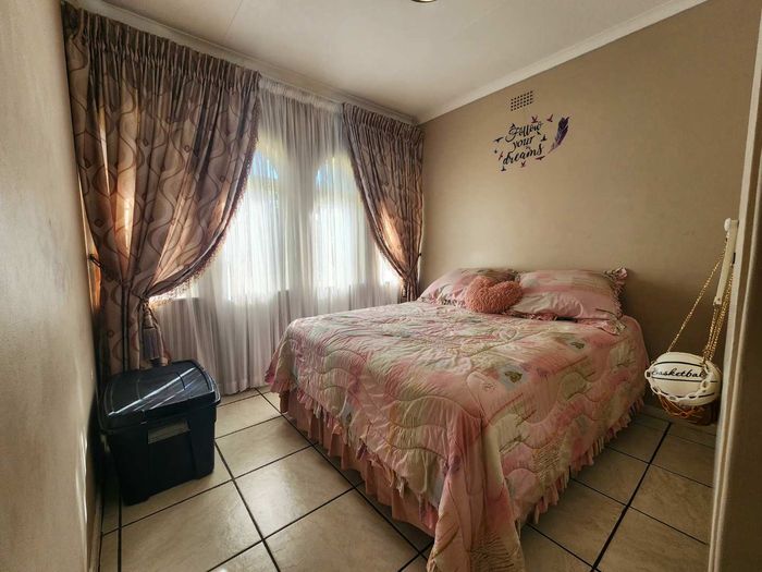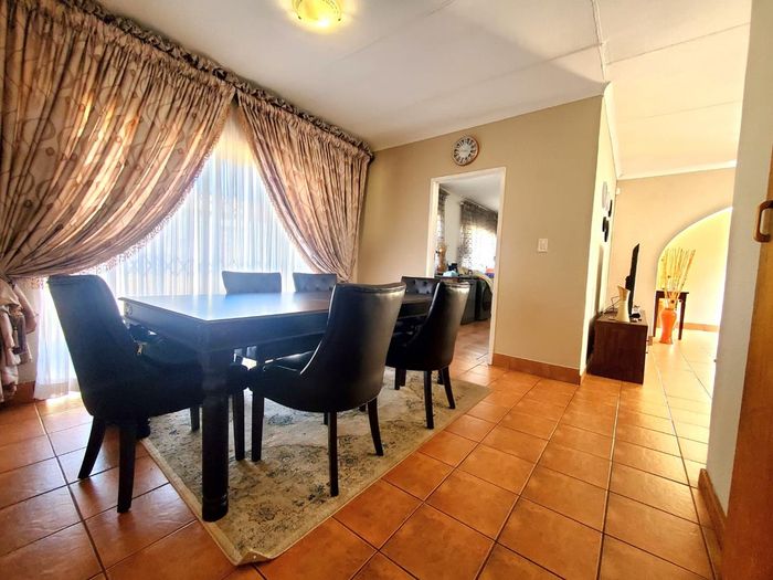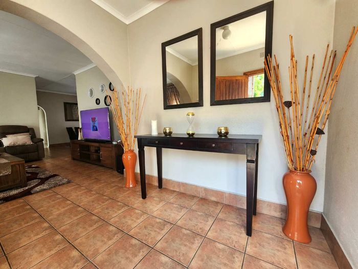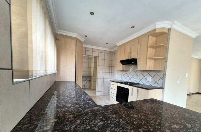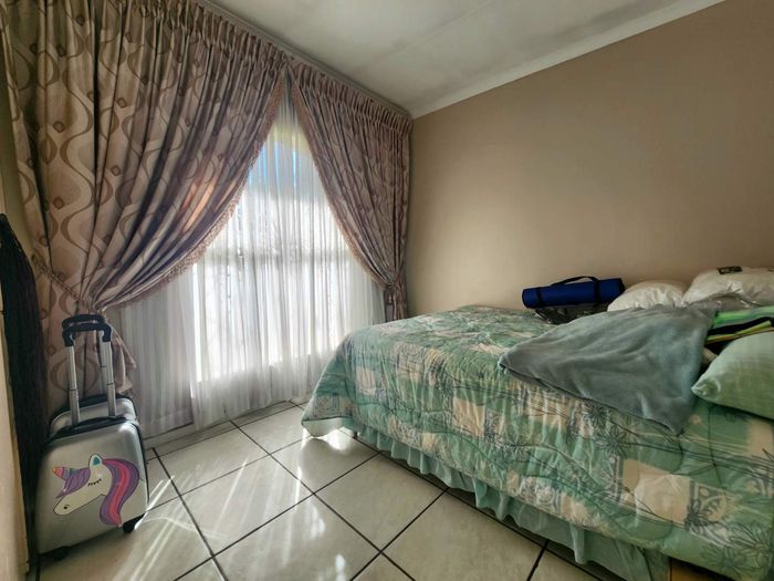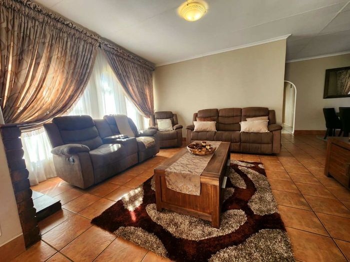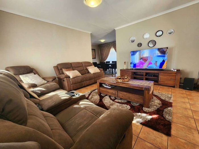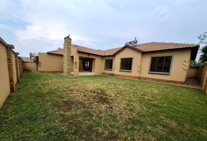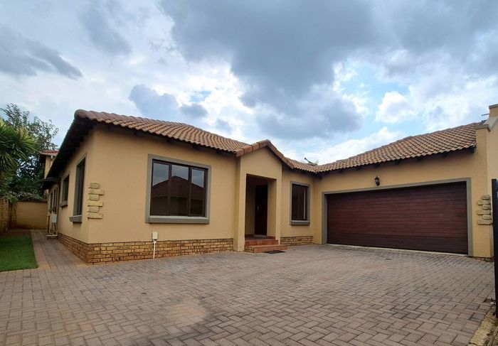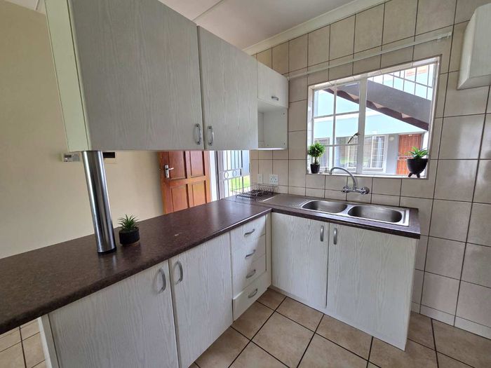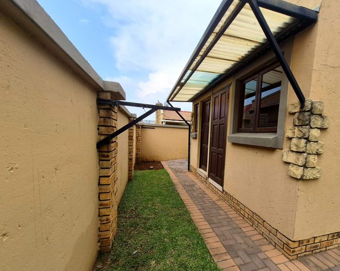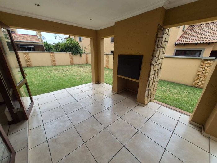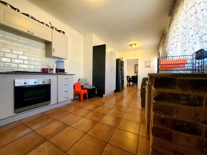 Family-focused living in Hughes near East Rand Mall and major highways; modern kitchen flows to a covered patio with built-in braai and private garden. Three bedrooms, double garage.
