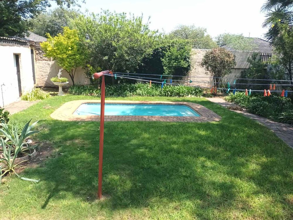 The garden is fully walled and has a sparkling pool.