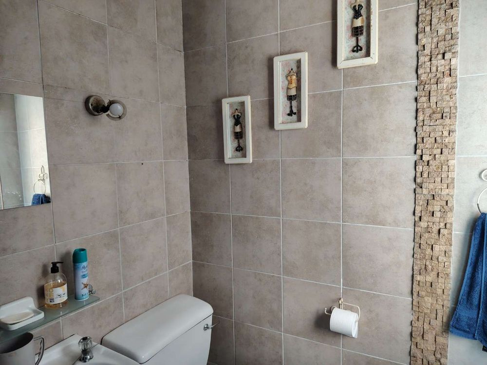 2 Bathrooms – One bathroom is located downstairs with a shower and toilet (fully tiled), while the upstairs bathroom features a bath, basin, and toilet (half tiled).