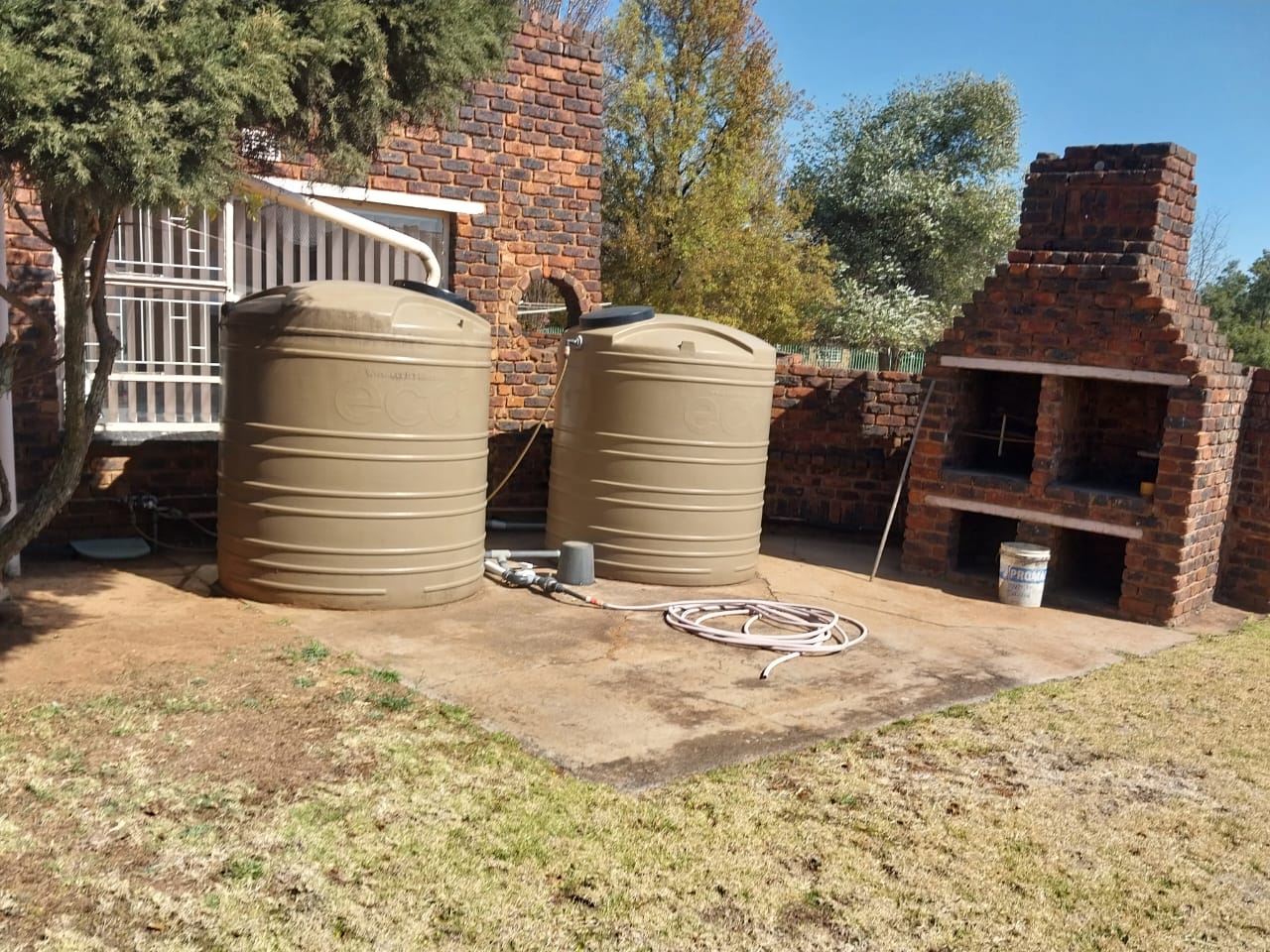 braai area Gazebo lapa satelite store room and 2 Water tanks with both dwellings. Solar panels and 7.2 batteries-invertor. water supply by municipiipality. Gas hobs in both dwellings. Cottage has remote gate and garage door.