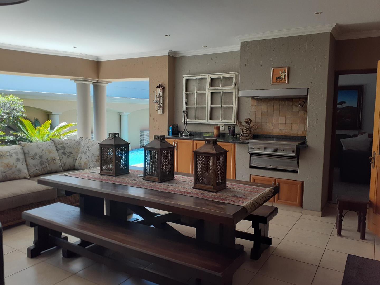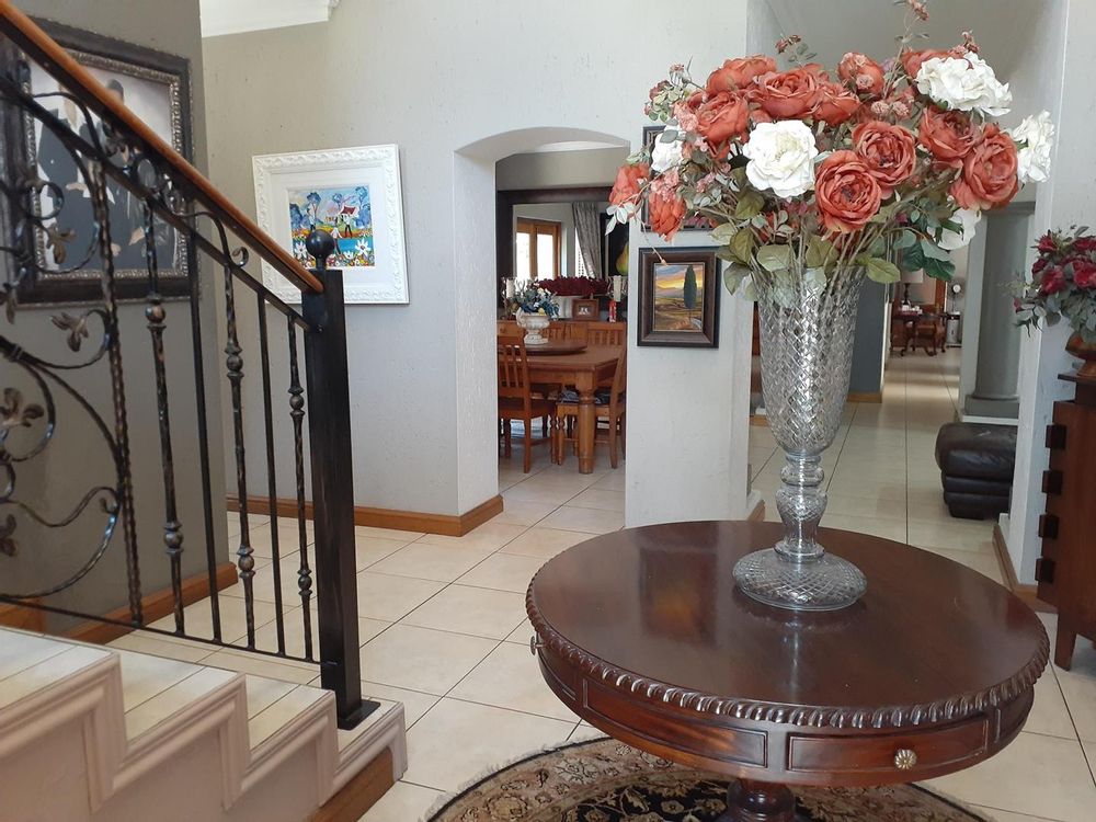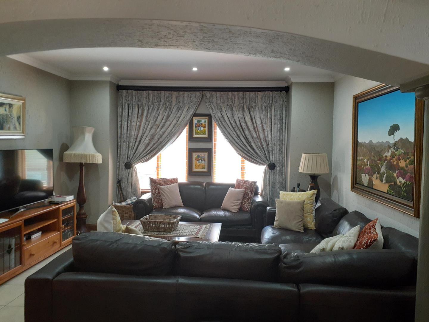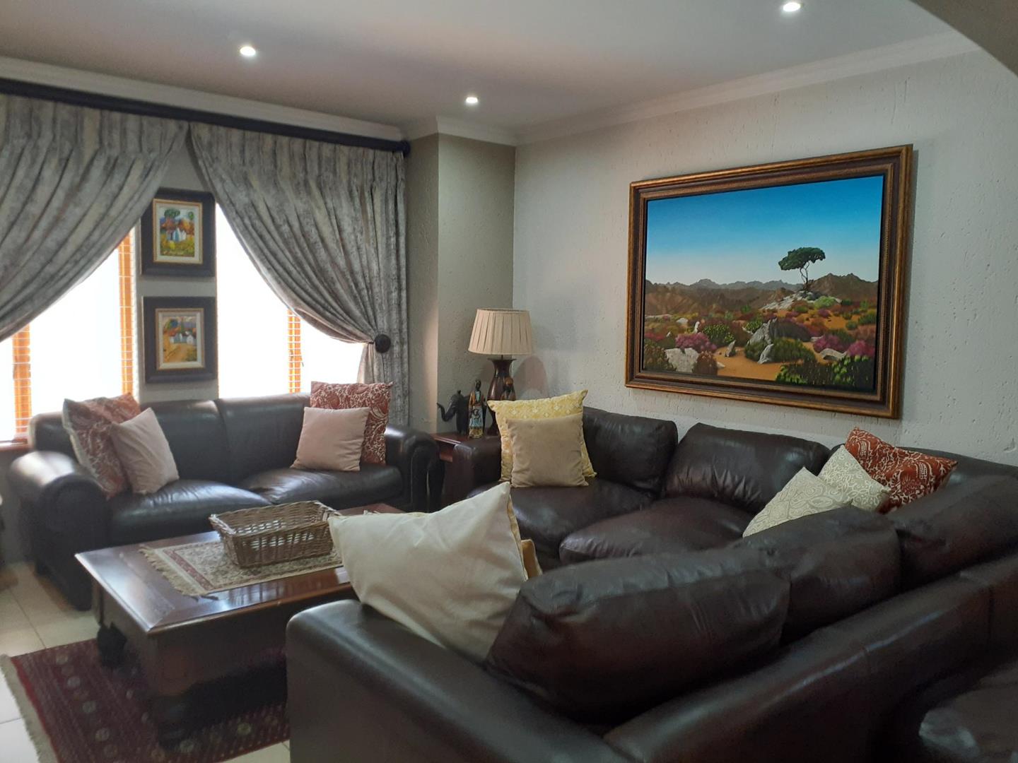 Welcome to this beautiful property that offers a range of desirable features. As you enter, you are greeted by three spacious living areas, perfect for entertaining guests or simply enjoying quality family time. The three bedrooms are adorned with laminated floors, providing a warm and inviting atmosphere. With four bathrooms and a convenient guest loo, there is plenty of space for everyone's needs.