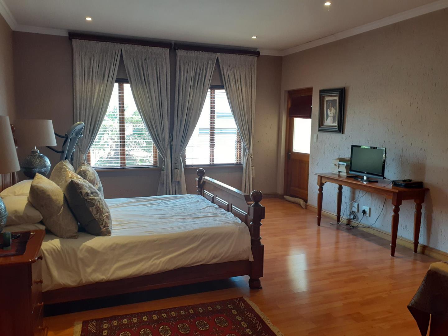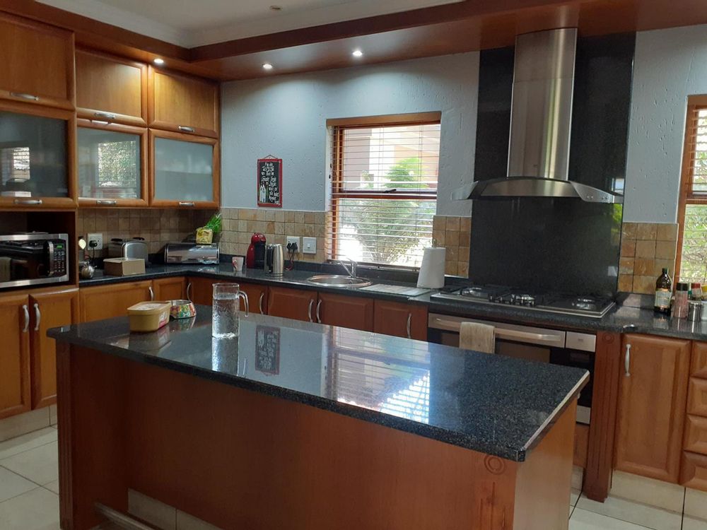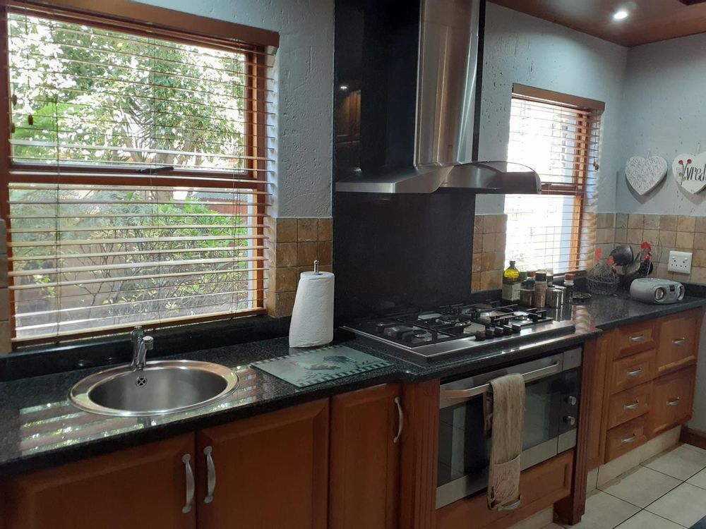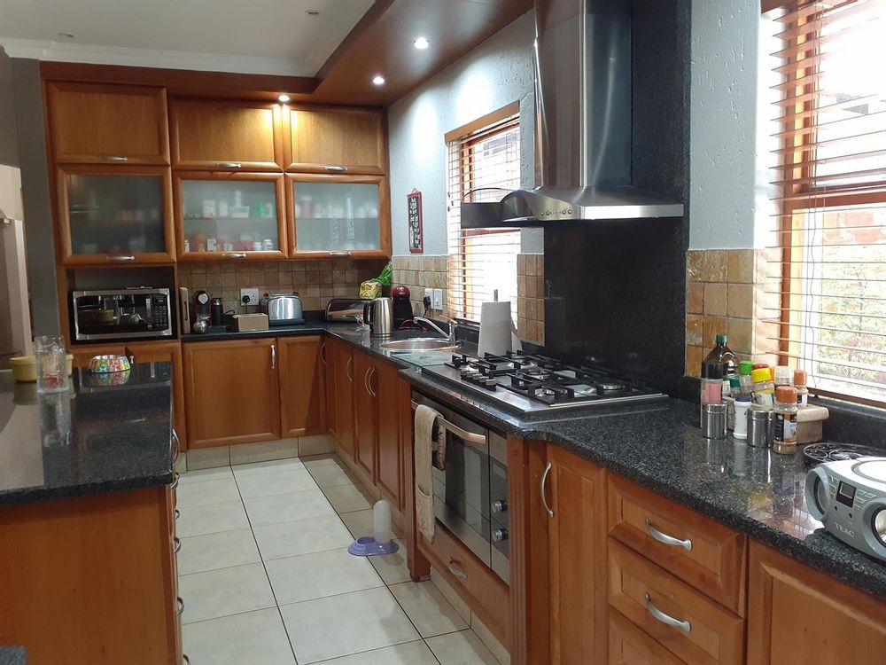 Welcome to this beautiful property that offers a range of desirable features. As you enter, you are greeted by three spacious living areas, perfect for entertaining guests or simply enjoying quality family time. The three bedrooms are adorned with laminated floors, providing a warm and inviting atmosphere. With four bathrooms and a convenient guest loo, there is plenty of space for everyone's needs.
