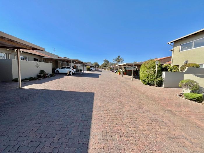 Townhouse with 2 bedrooms, 2 bathrooms, 75 m², patio, built-in braai, covered parking, and communal pool access.