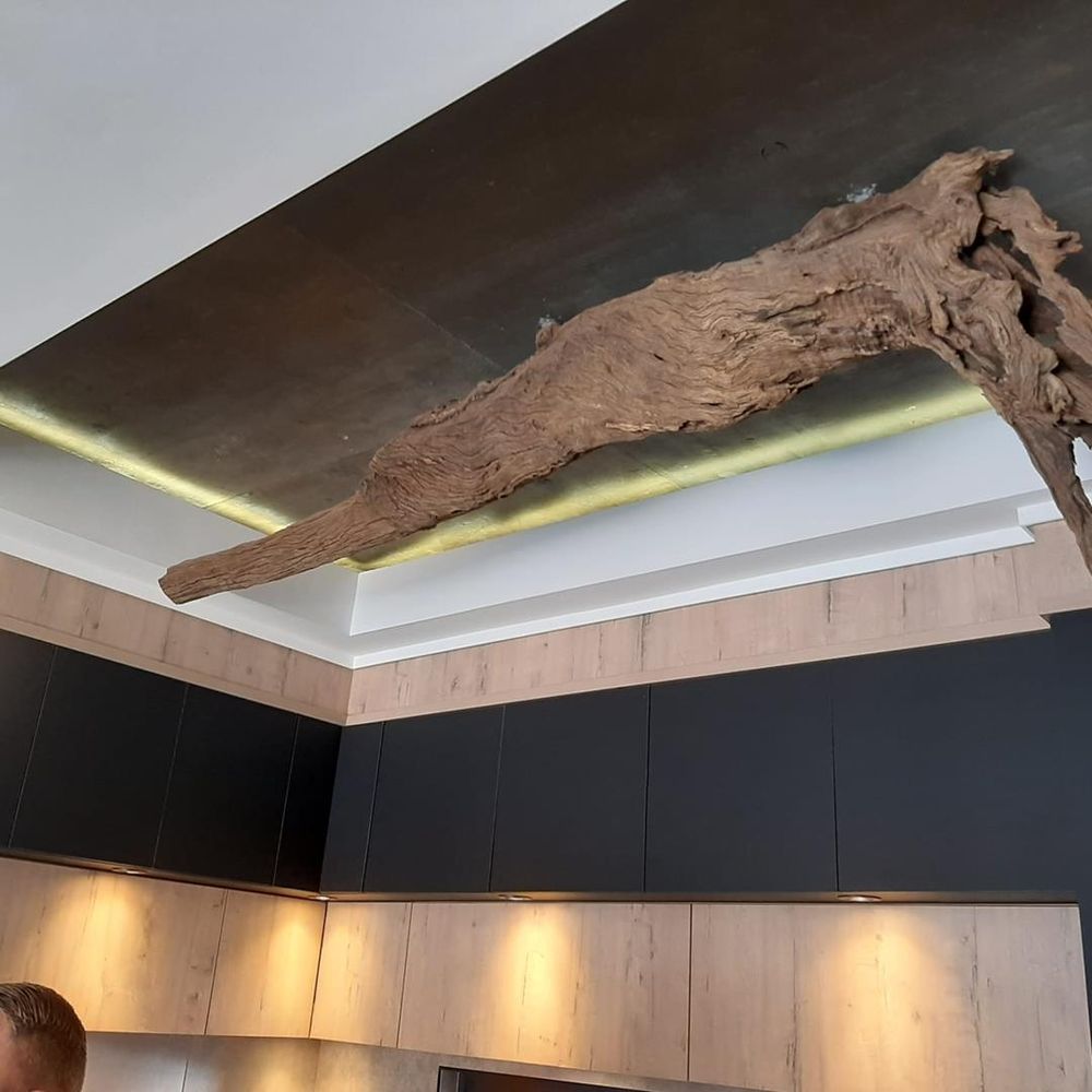 Step inside to find a large open-plan living area flooded with natural sunlight, accentuated by stunning driftwood light fixtures. The unit features two full bathrooms, each equipped with stylish concrete basins and built-in vanities, ensuring both comfort and elegance.
