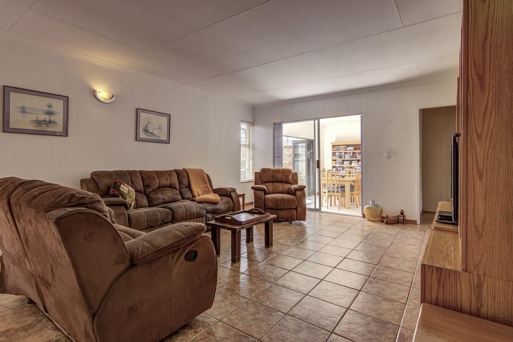 Aluminium stacker doors extend from the dining room onto a sunny patio overlooking the front garden. A built-in braai sets the scene for relaxed summer days...