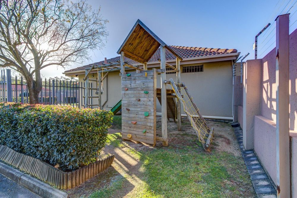 One covered parking bay and one open bay are allocated to the unit, and there is ample visitors parking. Pretty communal pool and braai area as well as a children's play area. Water back up tanks. Levy includes water.