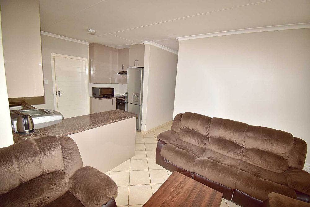 The modern open-plan kitchen and lounge area flows seamlessly to the braai area, creating an ideal space for socializing and making memories with family.
