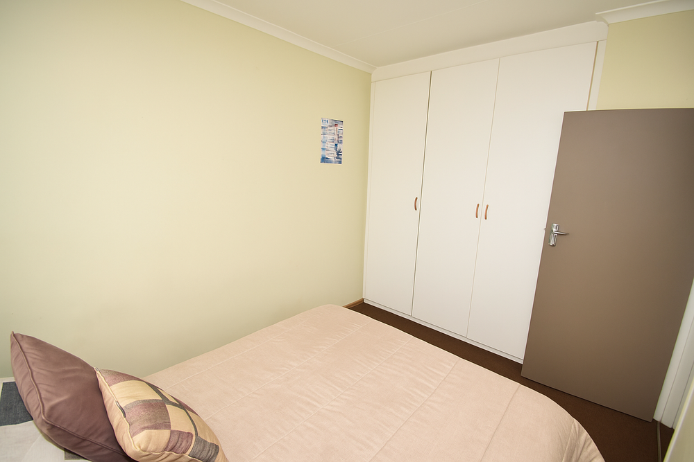 Easy urban living within walking distance to the shopping center — open-plan kitchen and lounge, two bedrooms, one bathroom, plus two parking bays (one covered).