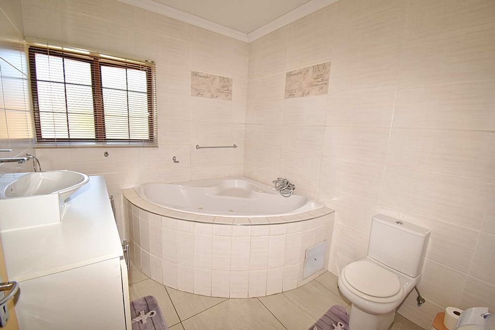 The home includes 3 spacious bedrooms with laminated floors, serviced by 2 bathrooms, including a main en suite. For added convenience and peace of mind, the property comes with a drive through double garage with automated doors, providing secure parking for your vehicles.