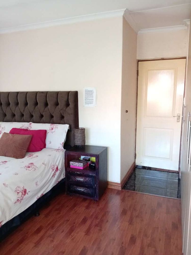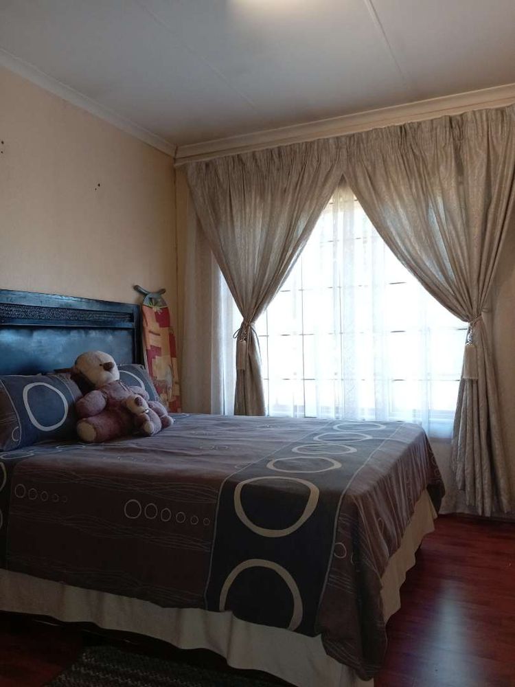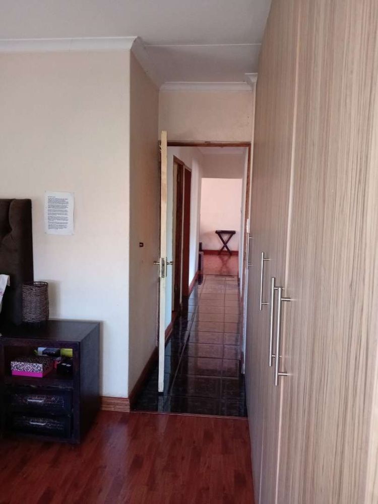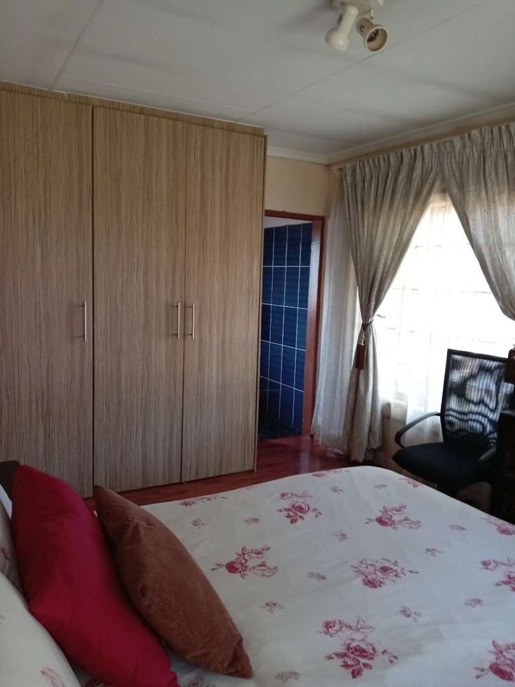 The property boasts three well-appointed bedrooms, each equipped with built-in cupboards. The main bedroom is generously sized and includes an ensuite bathroom complete with a shower, basin, toilet, and bath—offering a private sanctuary for relaxation. The second bathroom is conveniently equipped with a bath, basin, and toilet to cater to the needs of the entire family.