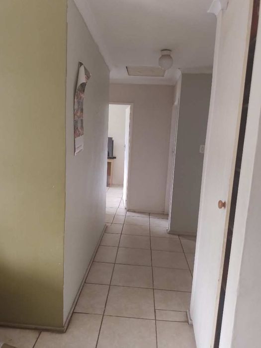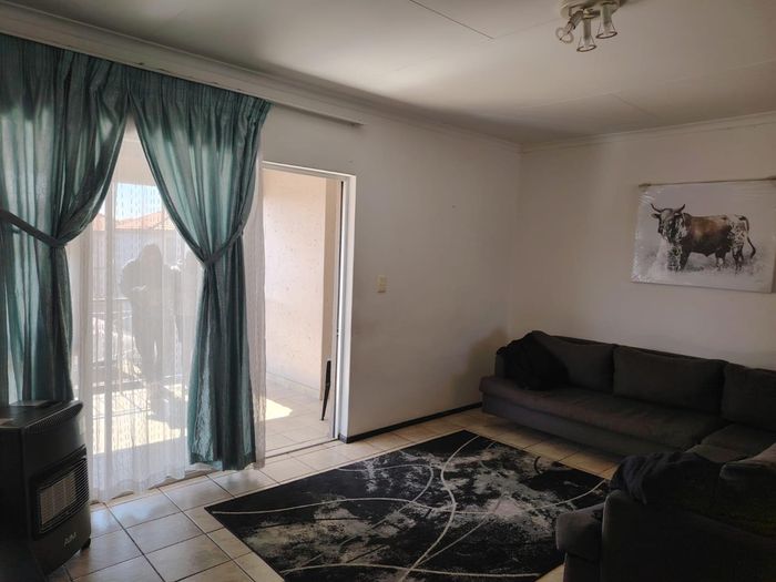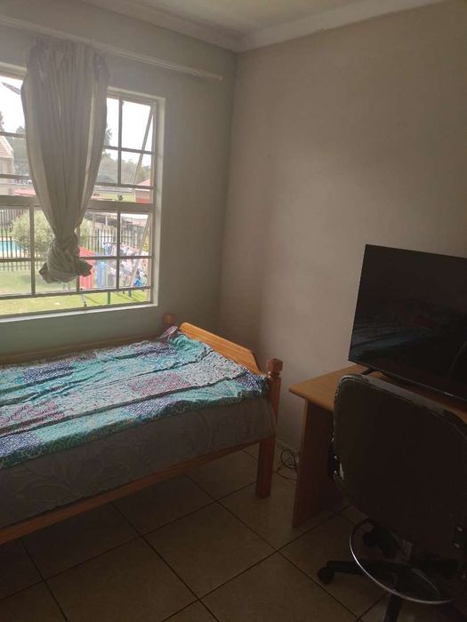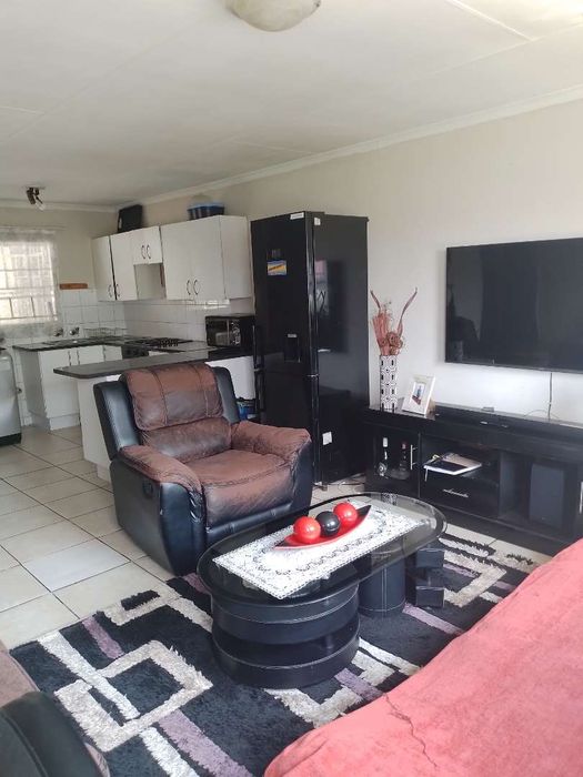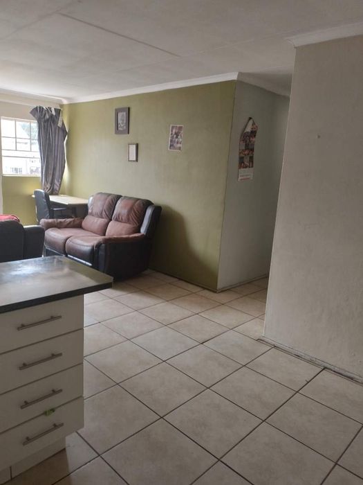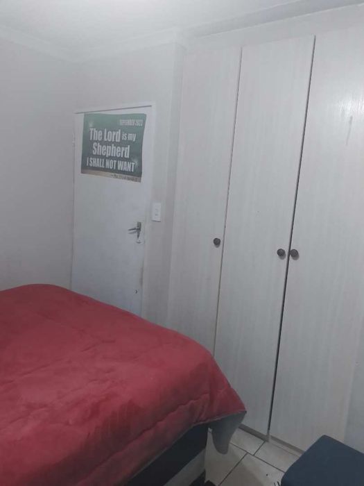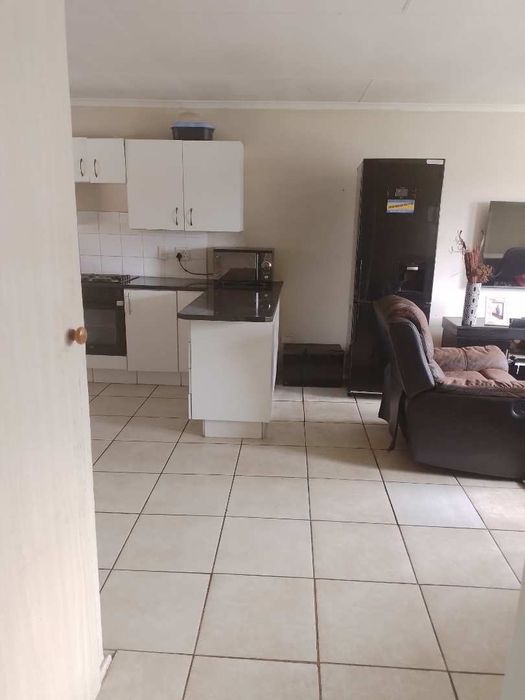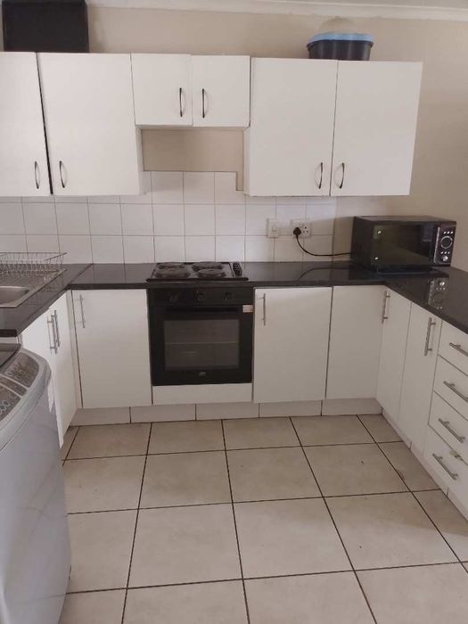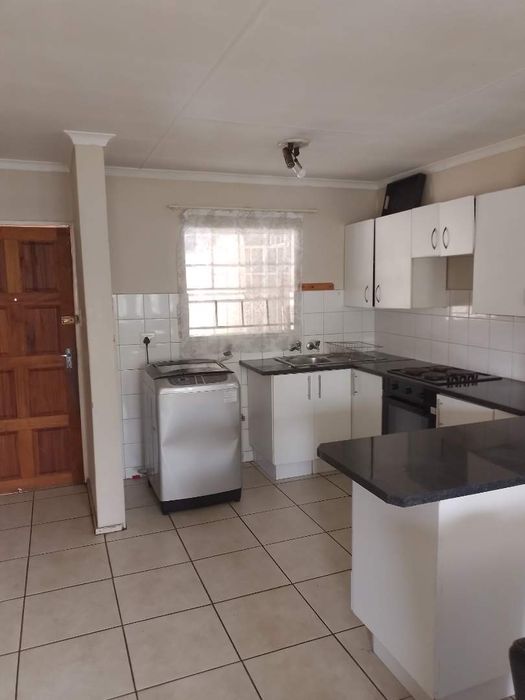 The townhouse boasts two cozy bedrooms, each with built-in cupboards, providing ample storage space. The bathroom is thoughtfully designed with a toilet, basin, and a convenient shower over the bath. Additional benefits include prepaid electricity, offering both convenience and control over your utility costs.