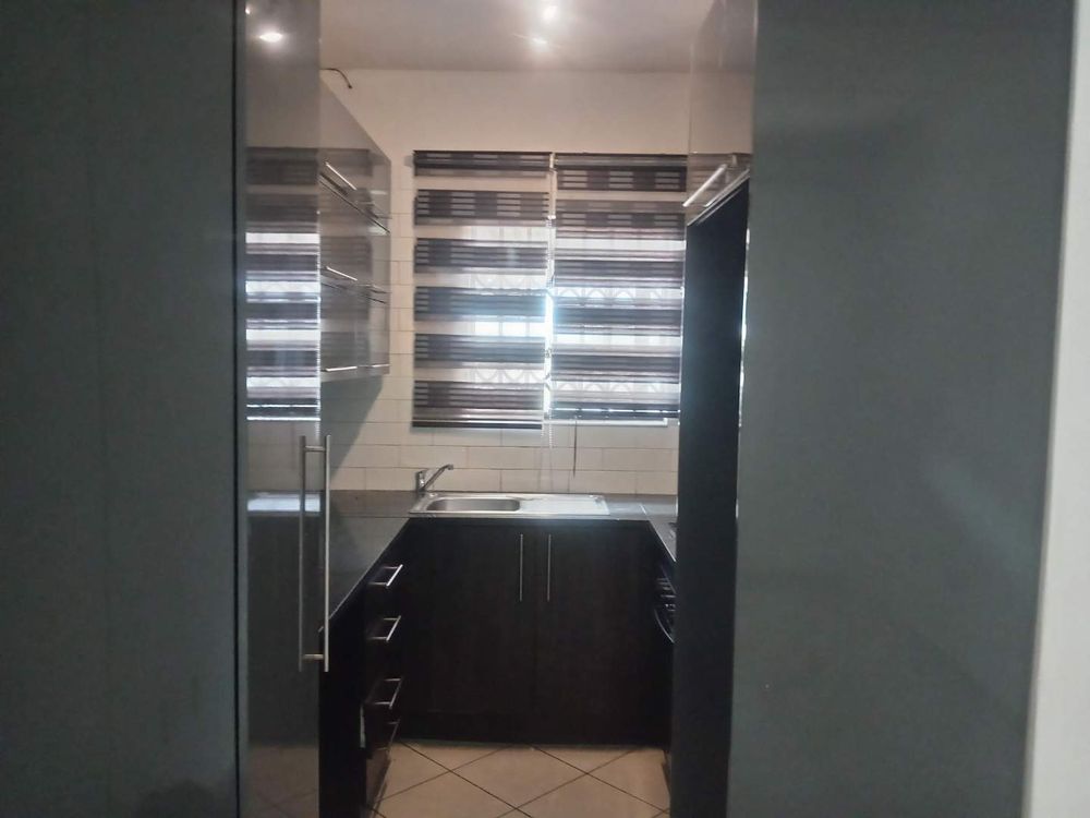 The well-equipped kitchen features a single sink, a four-plate stove, an extractor, and space for a single-door fridge. Its open-plan design seamlessly connects with the lounge area, creating a spacious and comfortable living environment ideal for both relaxation and entertaining.