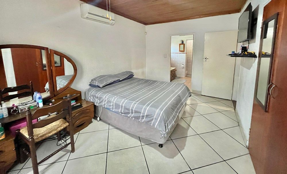 Three bedrooms with built-in cupboards and tiled floors; two bedrooms have ceiling fans. Large main bedroom with an air conditioner and TV connection.