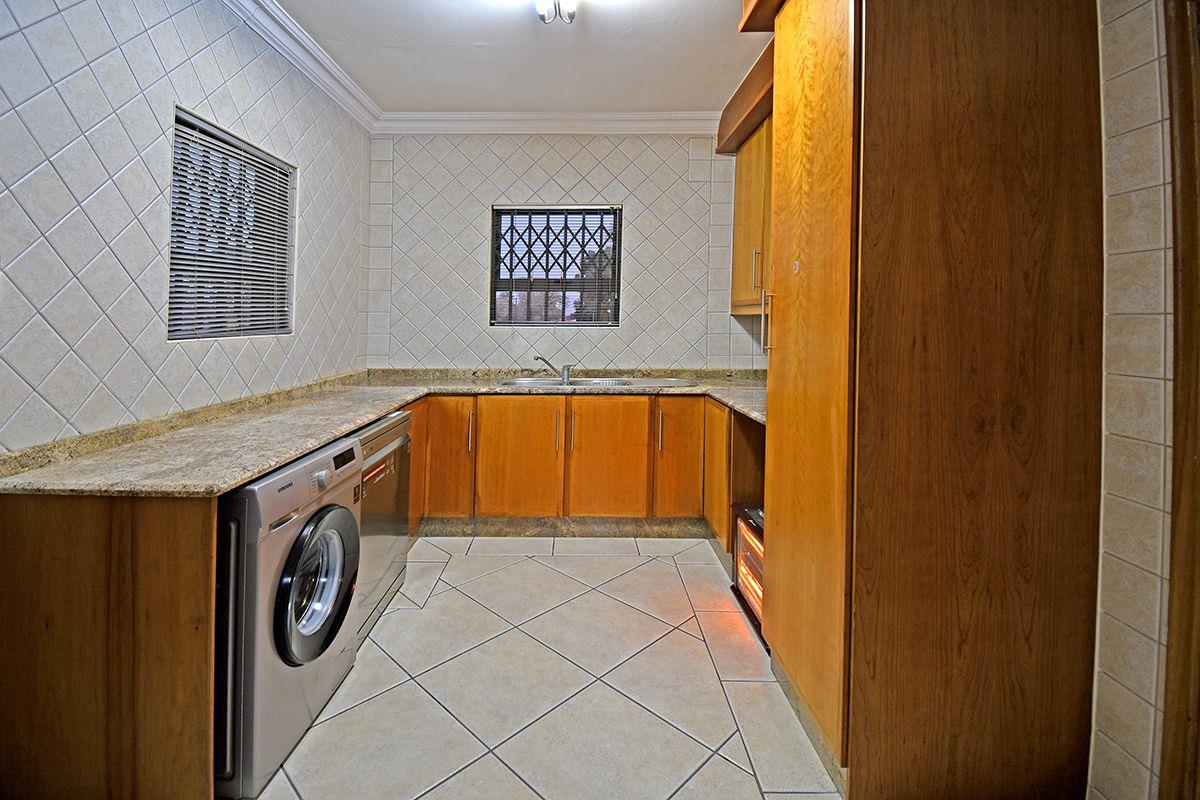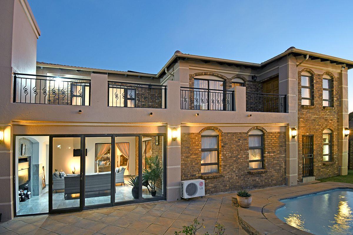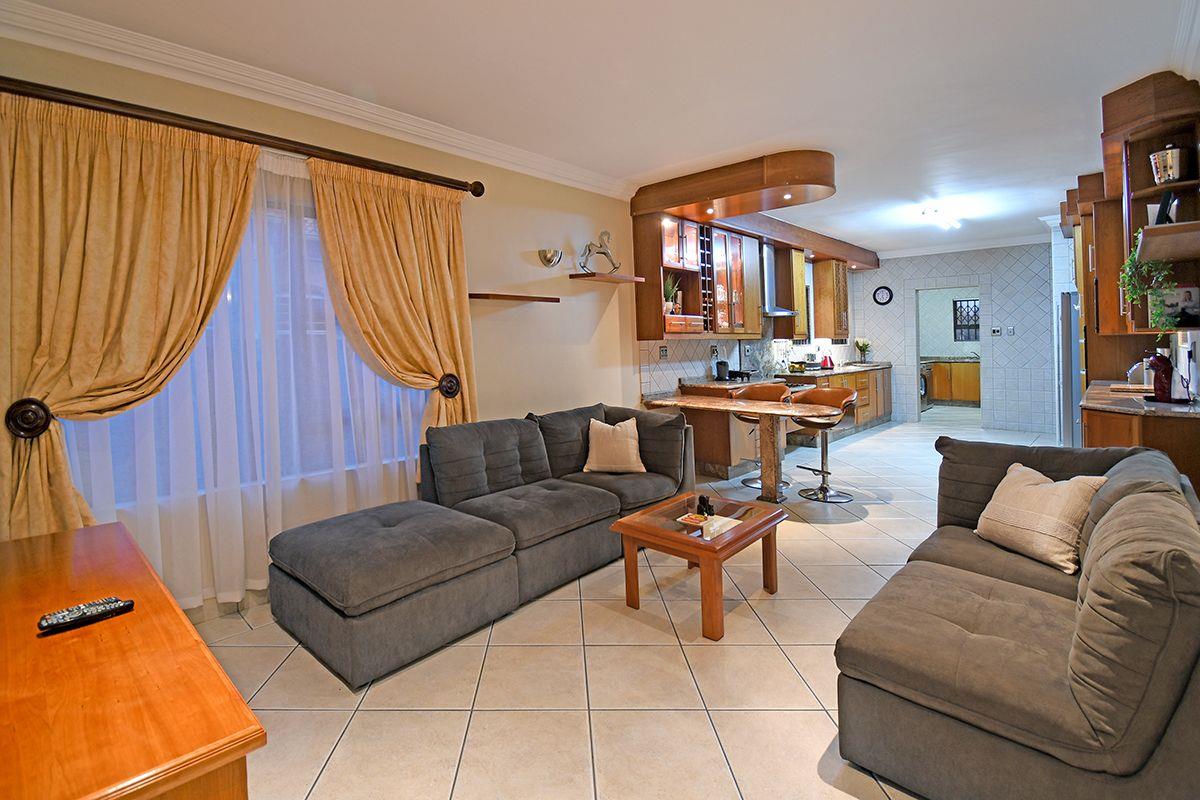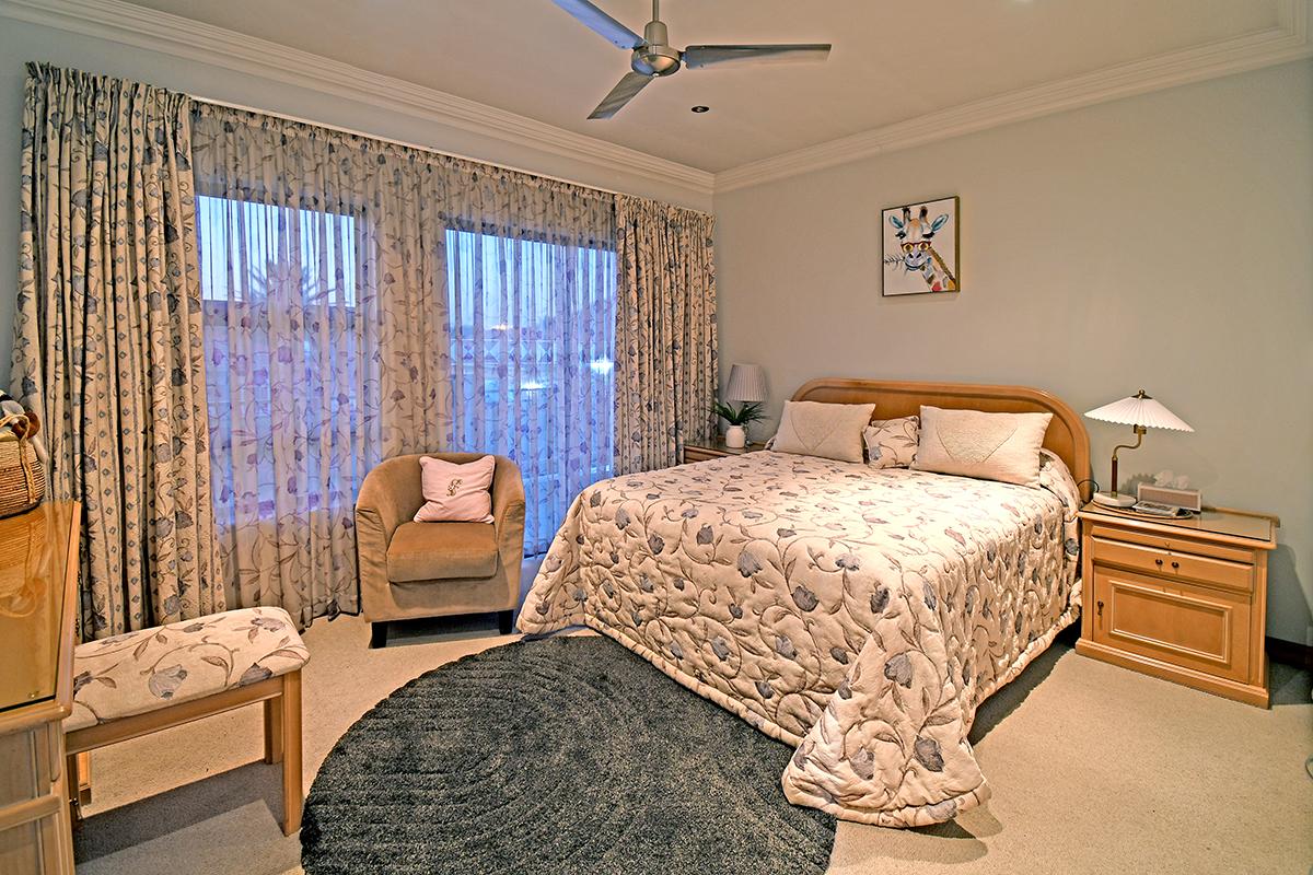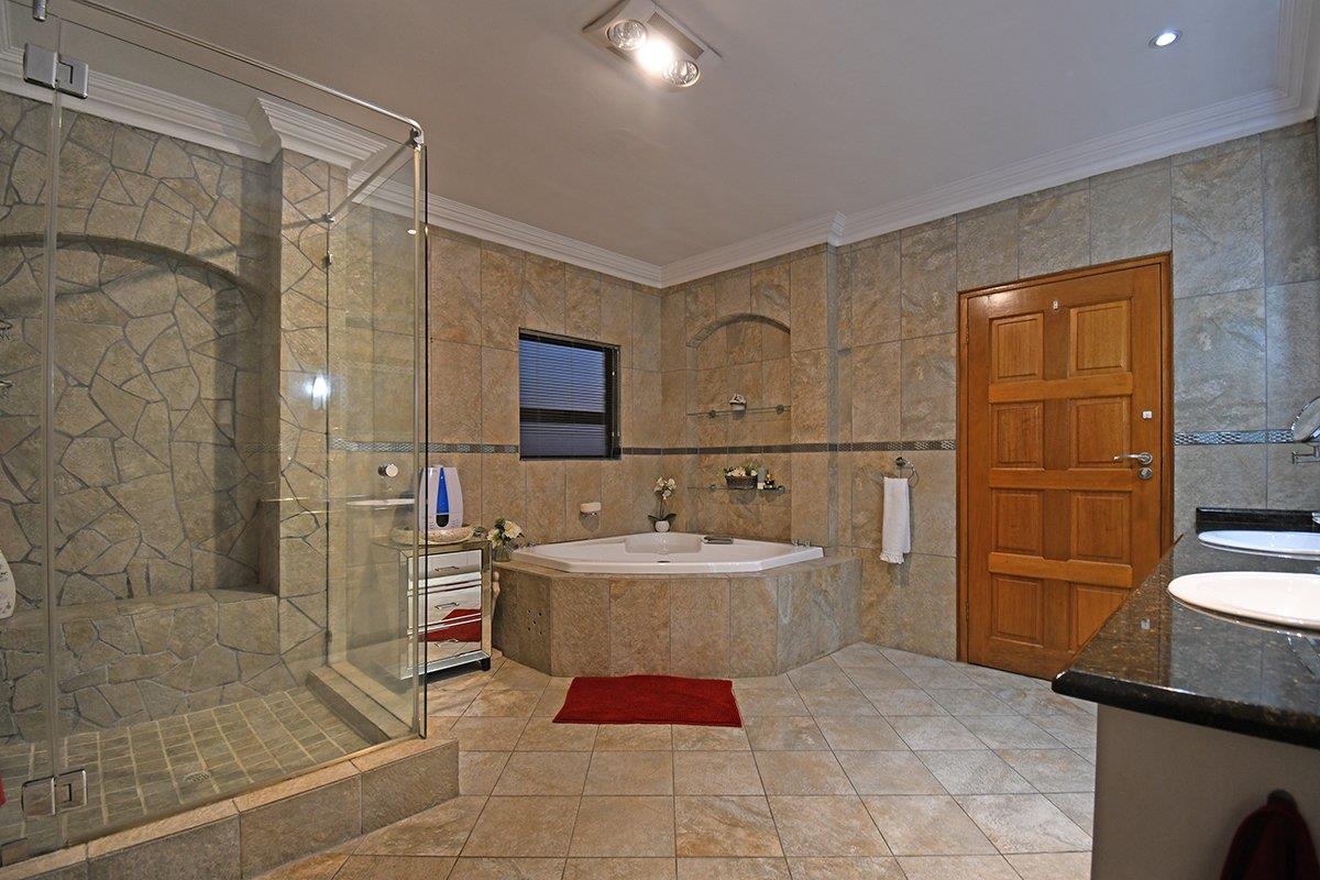 This home boasts a formal lounge, TV lounge, and dining room, all equipped with underfloor heating for added comfort. The kitchen with a scullery connects to the double garage. For those who love to entertain, an enclosed patio with a built-in braai awaits, with stacker doors that open up to reveal the serene garden and solar-heated swimming pool.