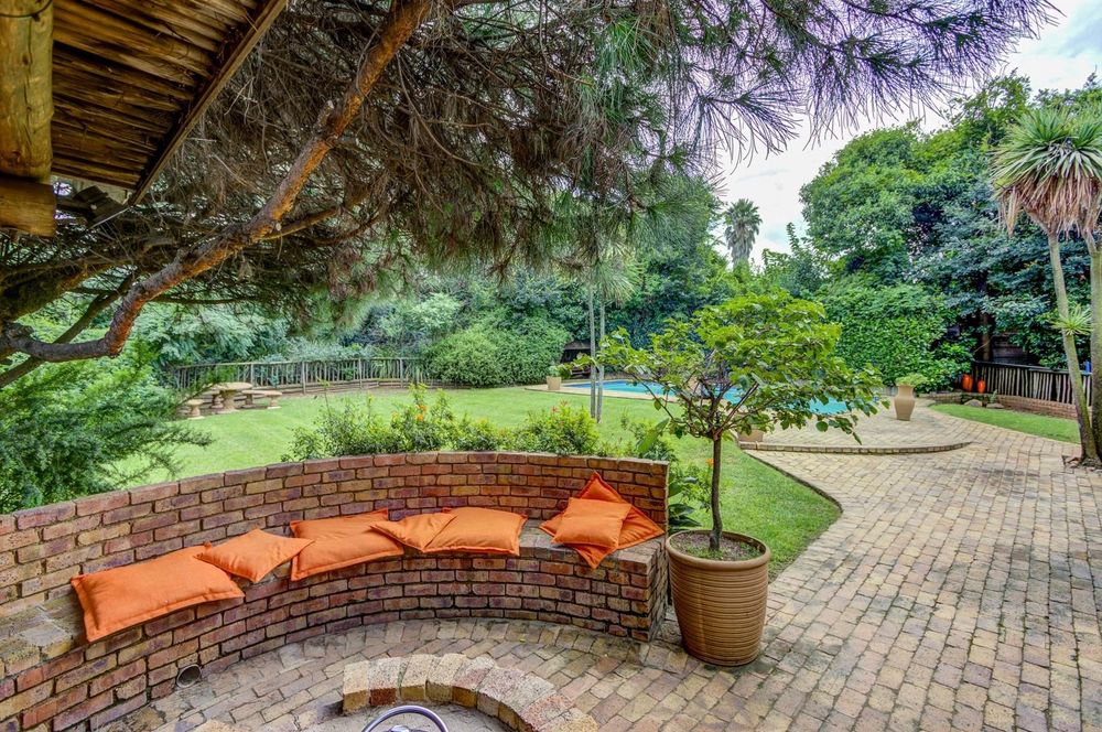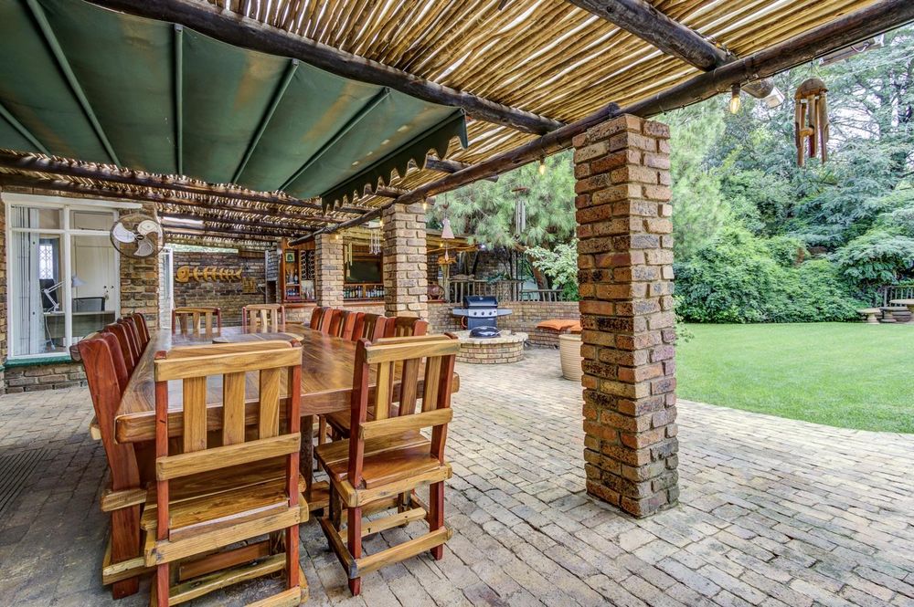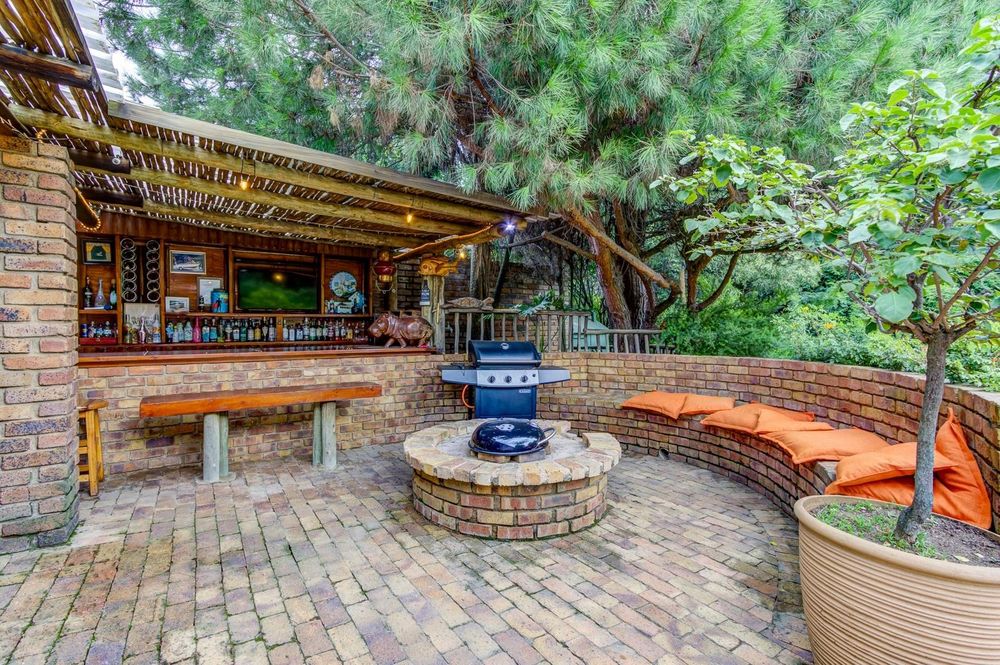 The covered patio, bar, built-in braai and fire pit call for happy generations of friends and family gathering on sunny afternoons or at night under the pretty lighting.