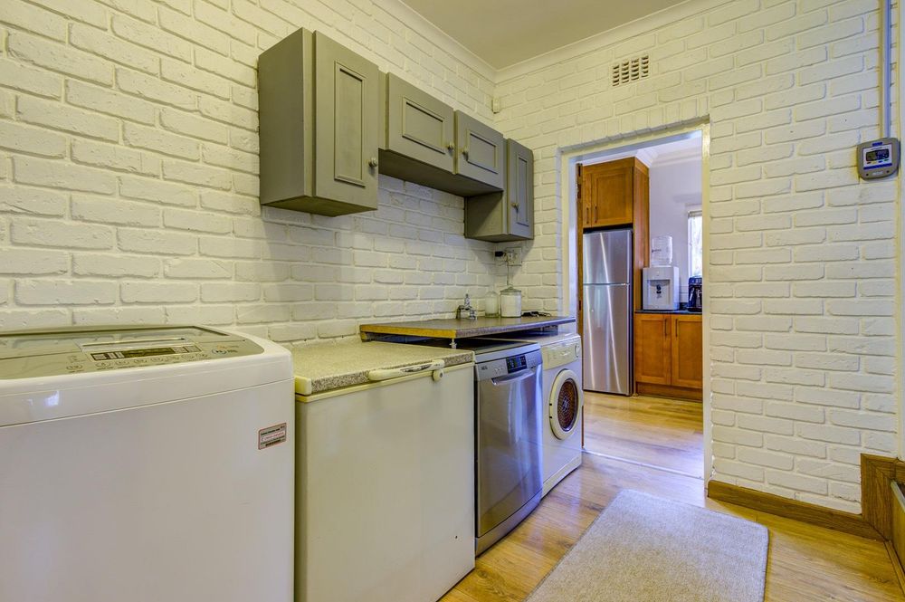 The kitchen boasts a centre island and gas stove, and extends to a scullery area and separate laundry.