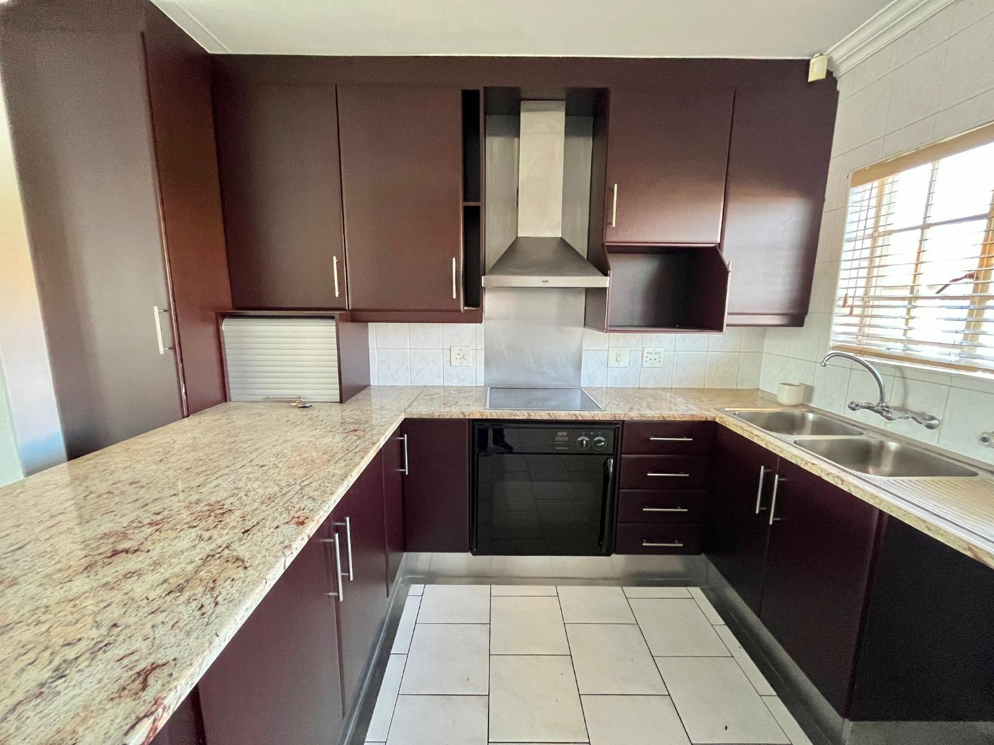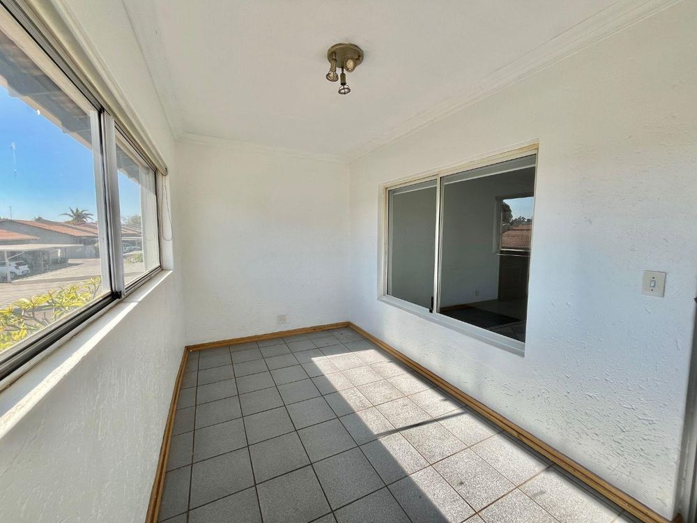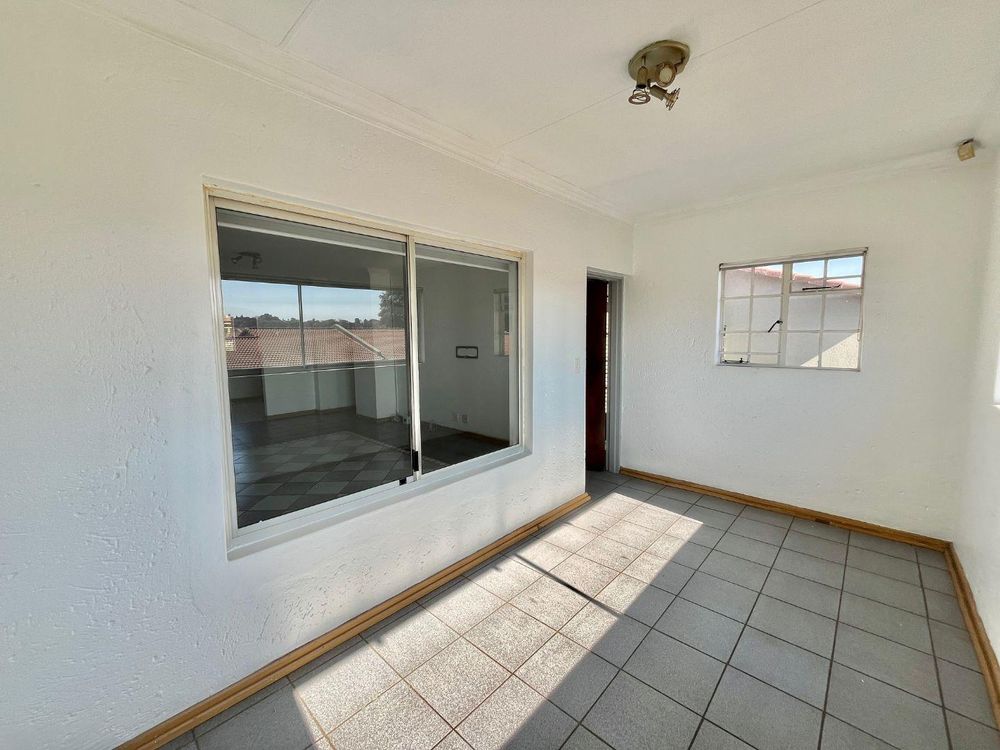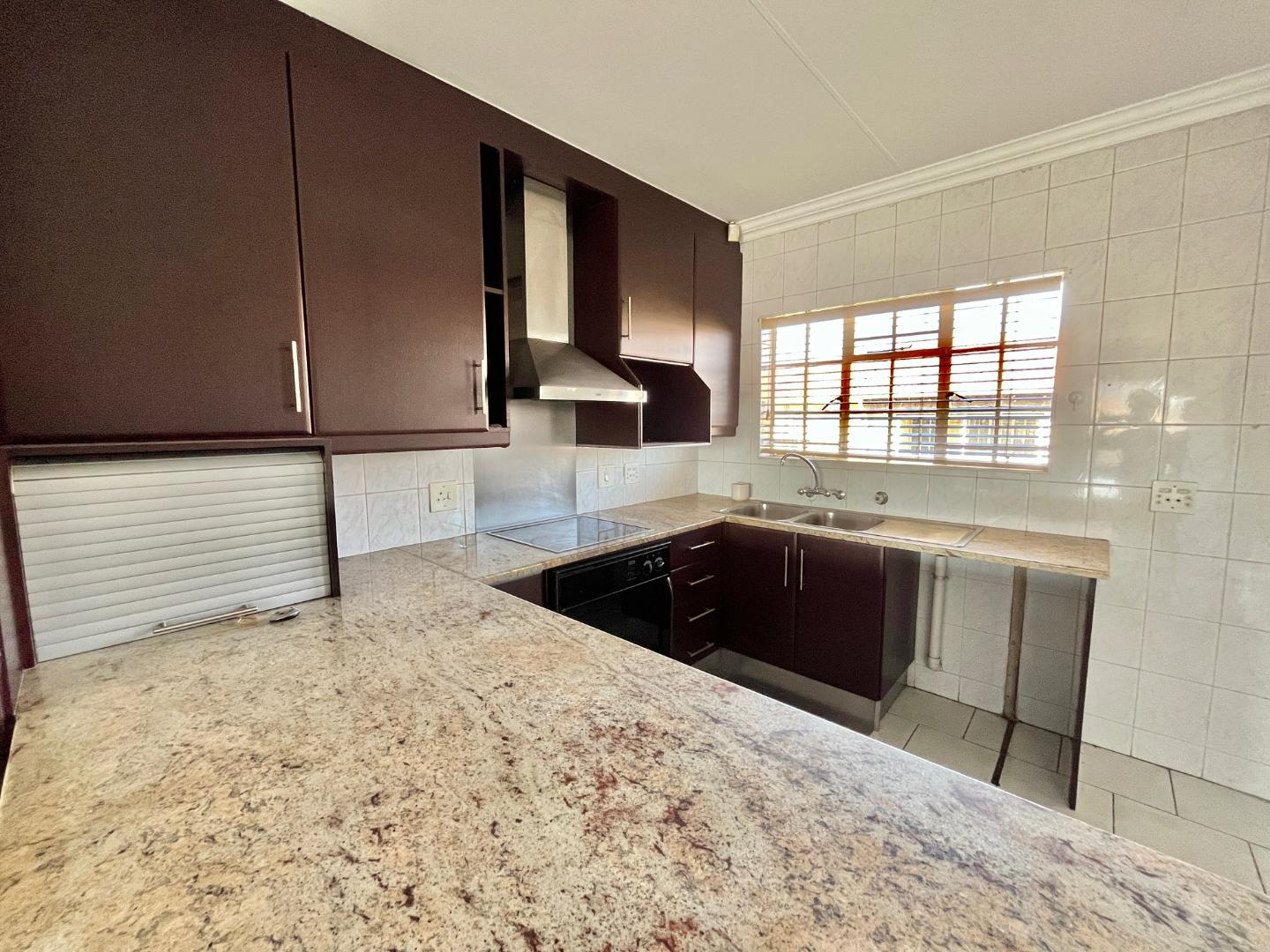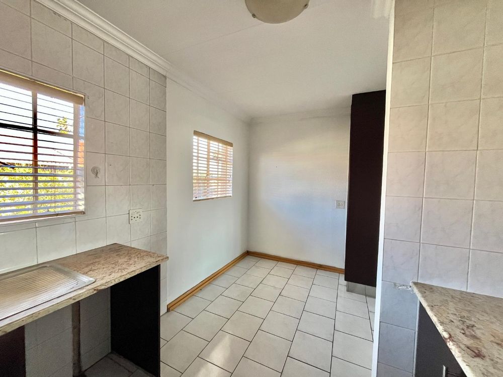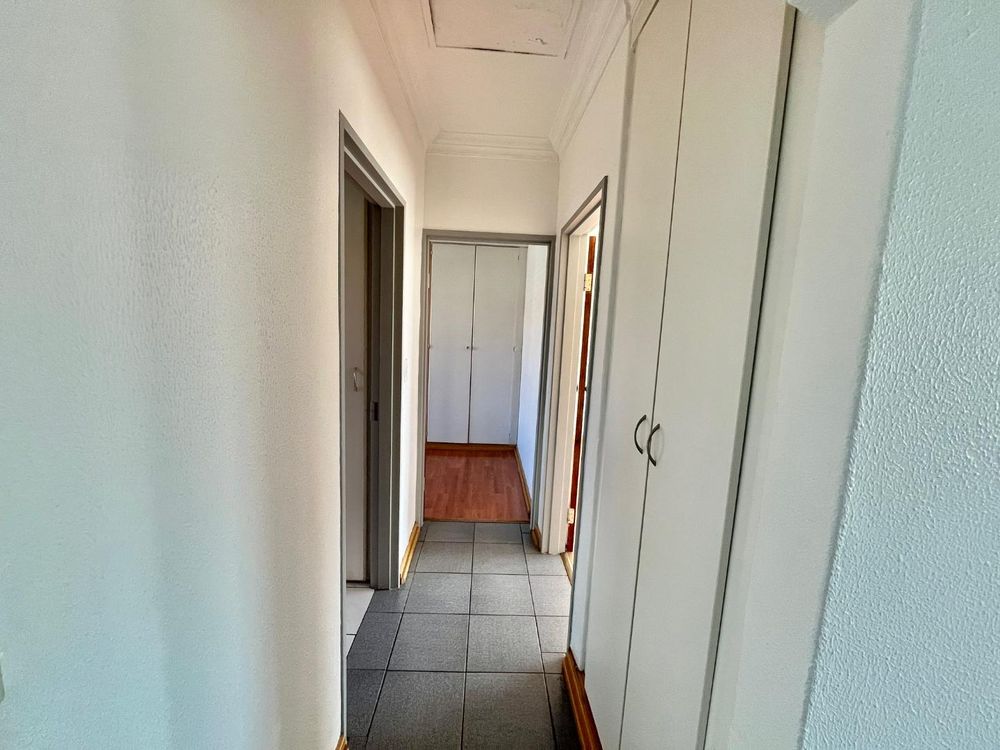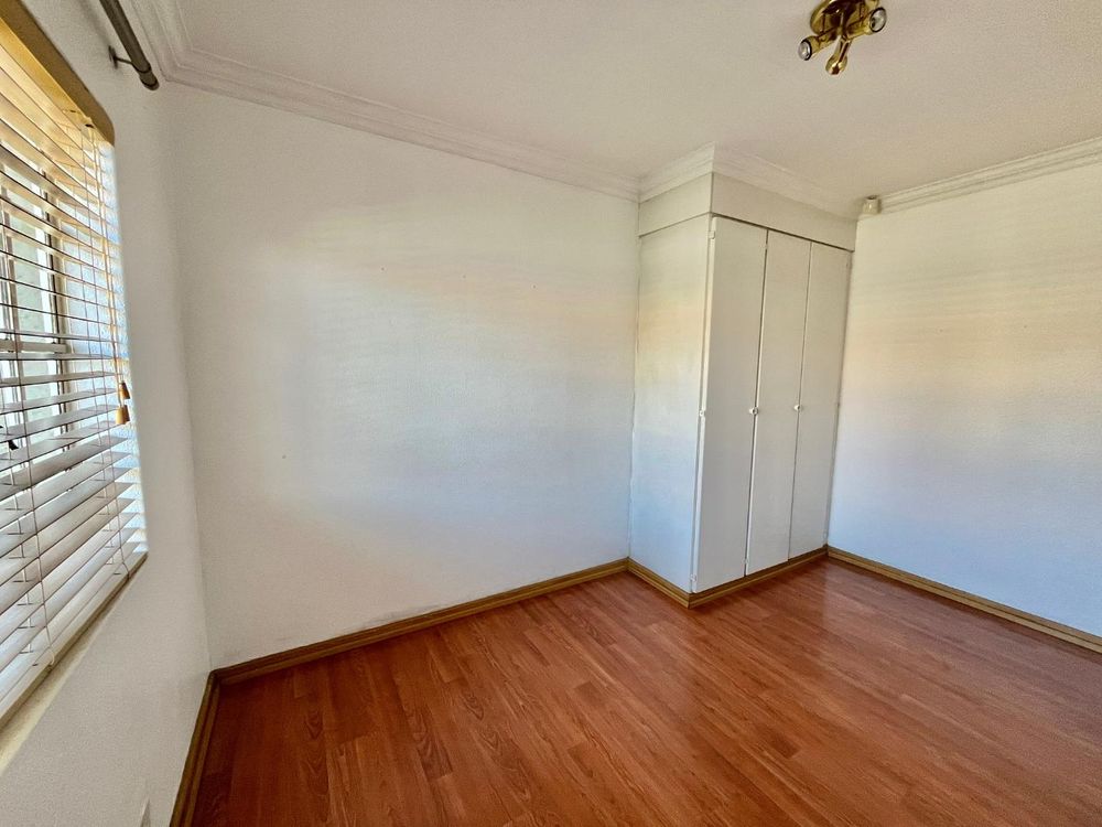 Both bedrooms are of medium size and offer tiled floors along with built-in cupboards, ensuring plenty of storage and comfort. The modern full bathroom is designed with relaxation in mind, complete with both a shower and a bath, tiled floors, and a contemporary basin.