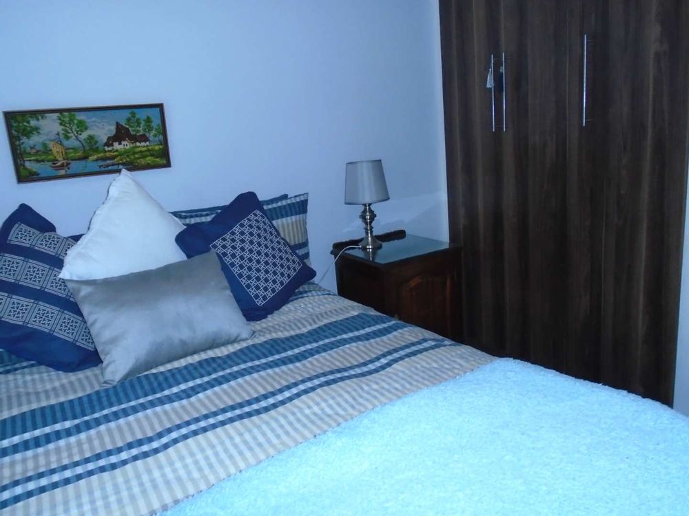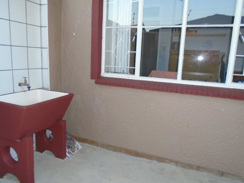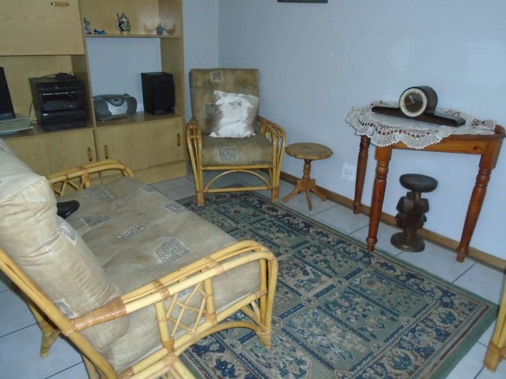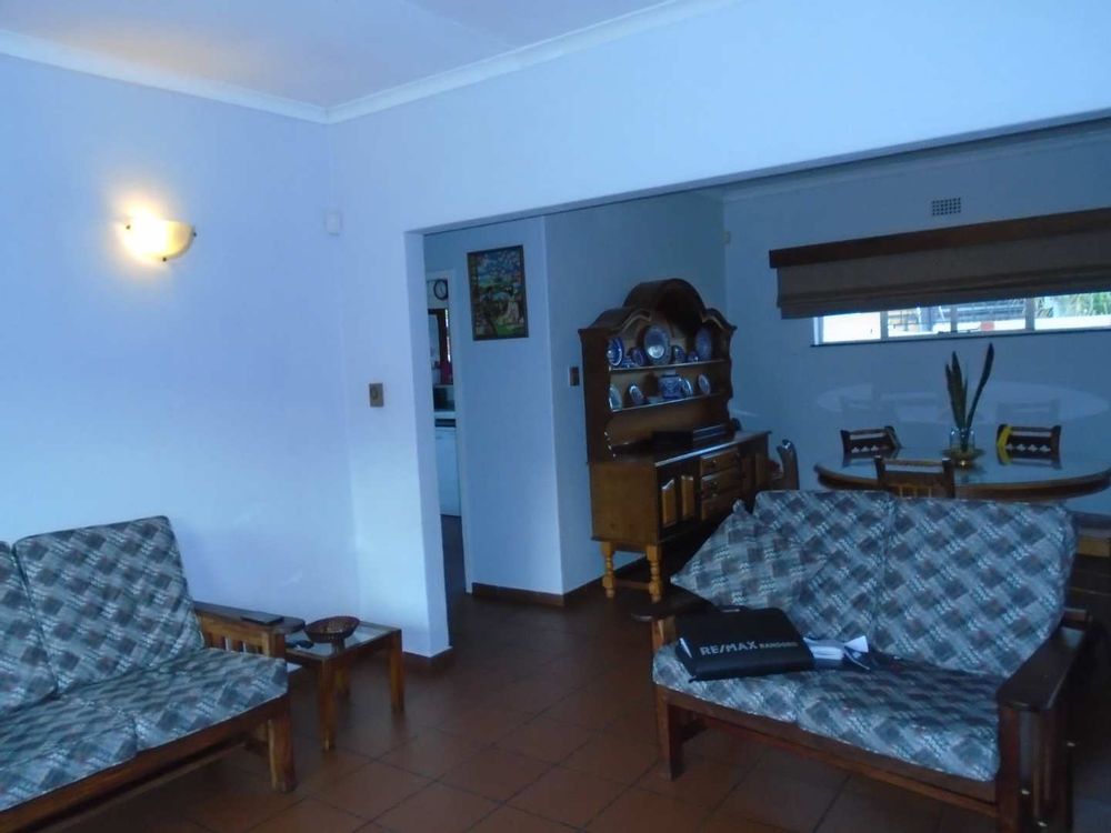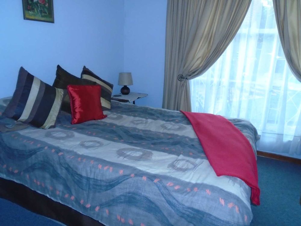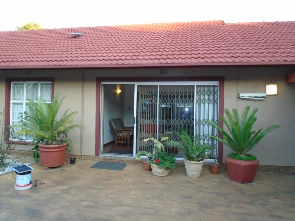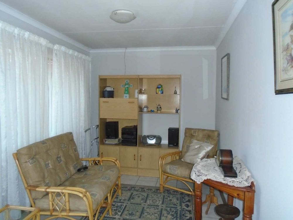 The open-plan dining area flows into a well-appointed kitchen, featuring melamine units and granite countertops, providing ample space for all your appliances. A convenient scullery complements the kitchen, adding extra functionality. For those who work from home, a tiled study with a movable cupboard, which is included with the property, offers a quiet workspace.