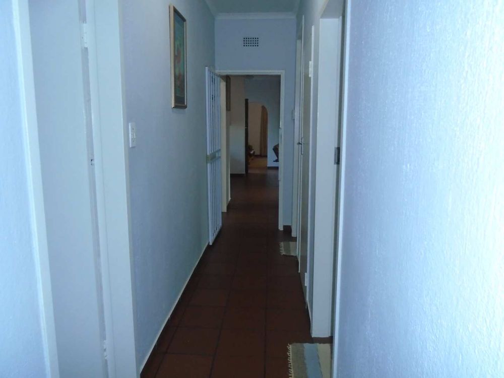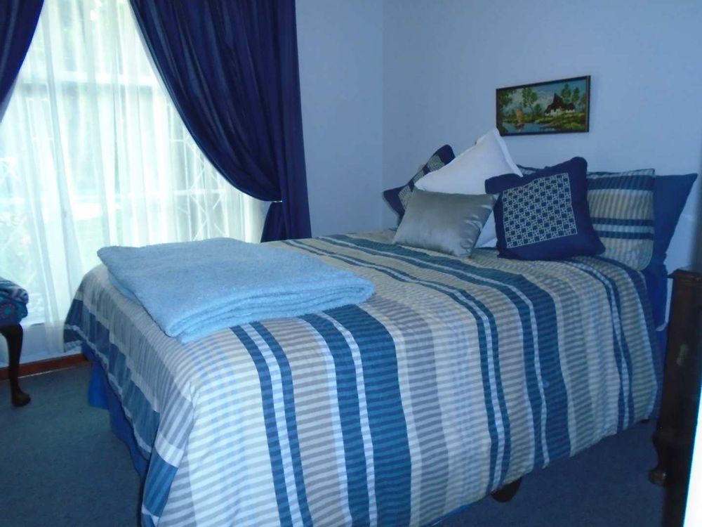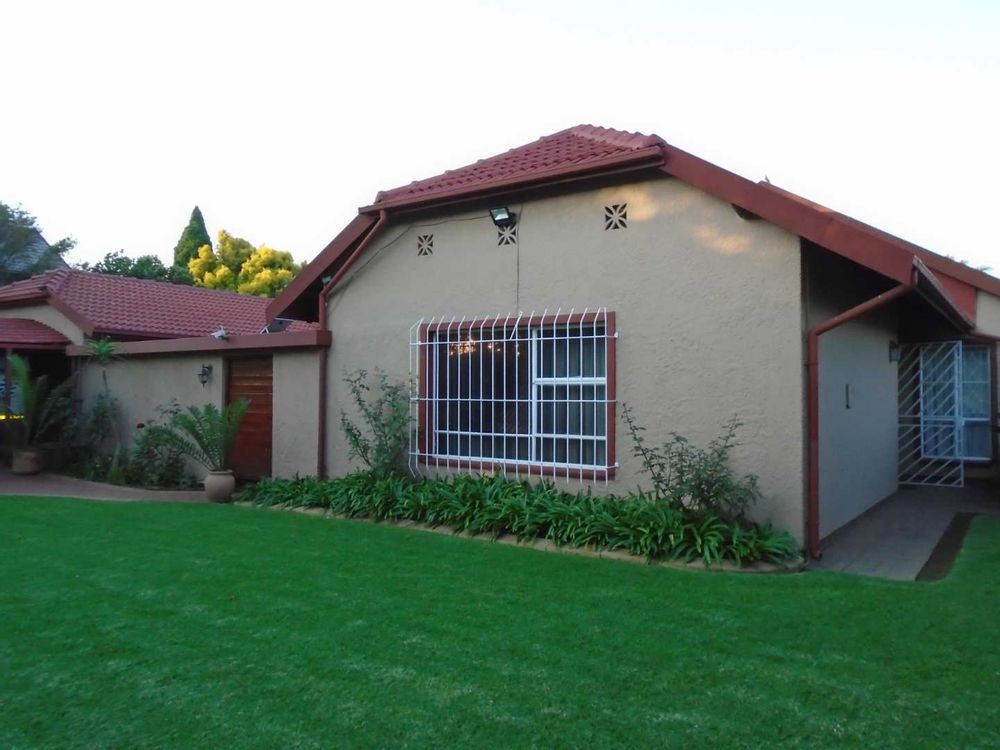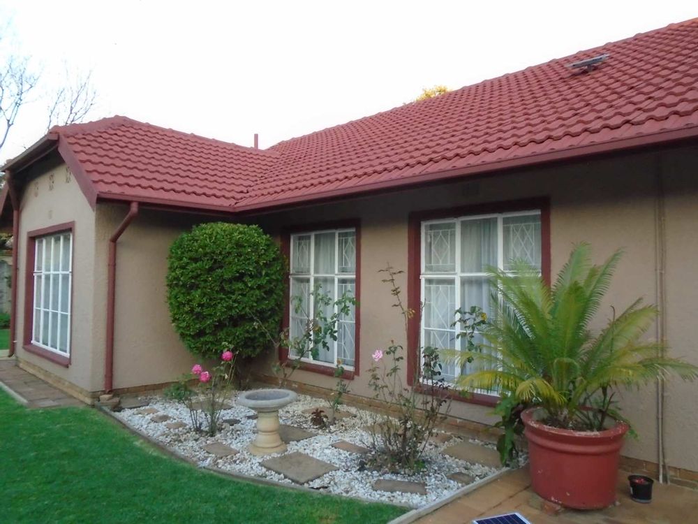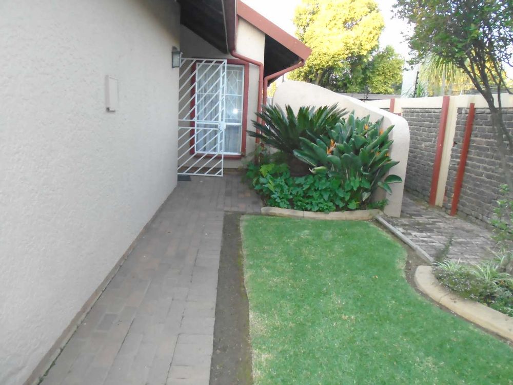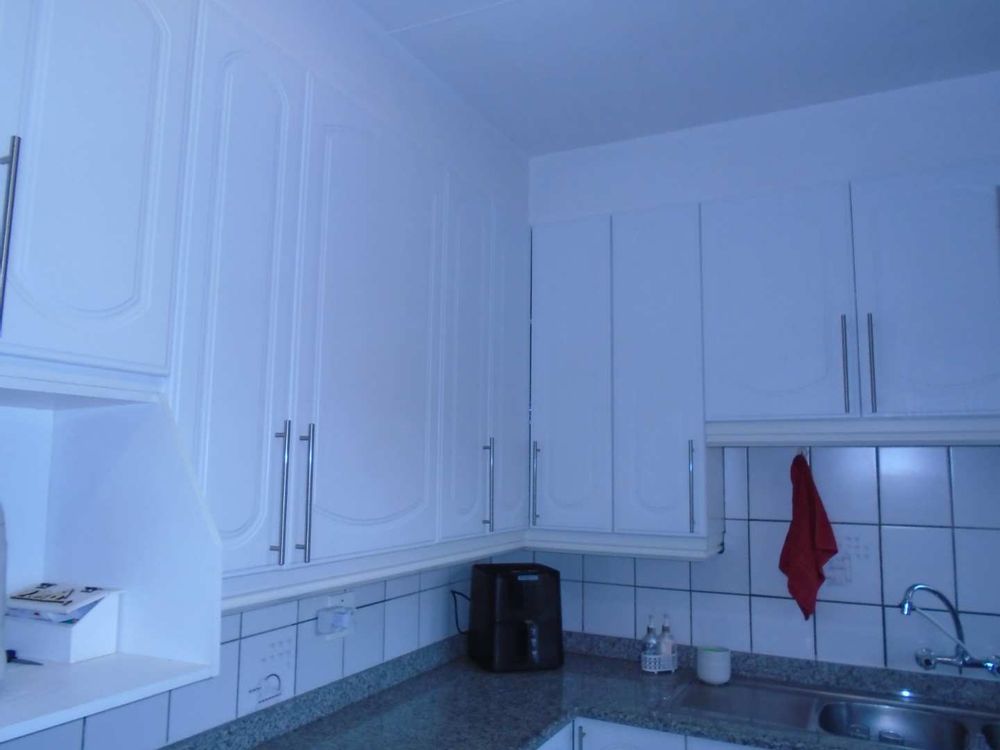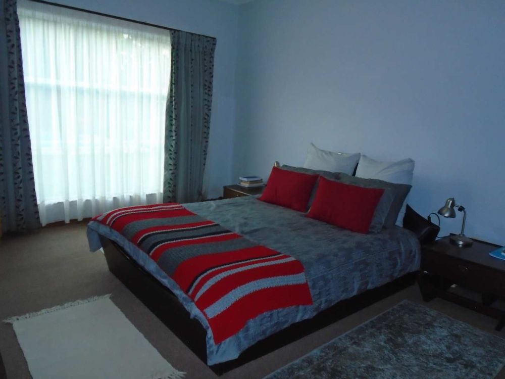 The open-plan dining area flows into a well-appointed kitchen, featuring melamine units and granite countertops, providing ample space for all your appliances. A convenient scullery complements the kitchen, adding extra functionality. For those who work from home, a tiled study with a movable cupboard, which is included with the property, offers a quiet workspace.