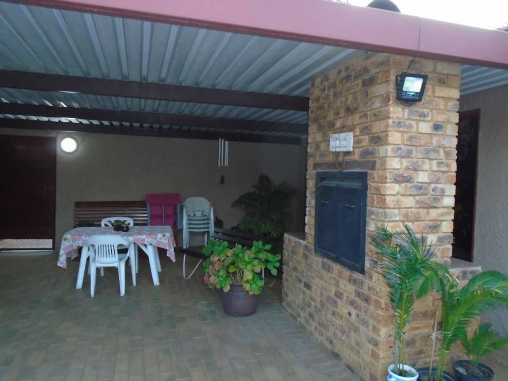 Upon entering, you're greeted by a tiled entrance that sets the tone for the spacious interiors. The sunken, carpeted lounge offers a cozy atmosphere for relaxation. Adjacent to it is an open-plan, tiled TV lounge that seamlessly transitions to an outdoor patio, complete with a built-in braai—perfect for entertaining guests.