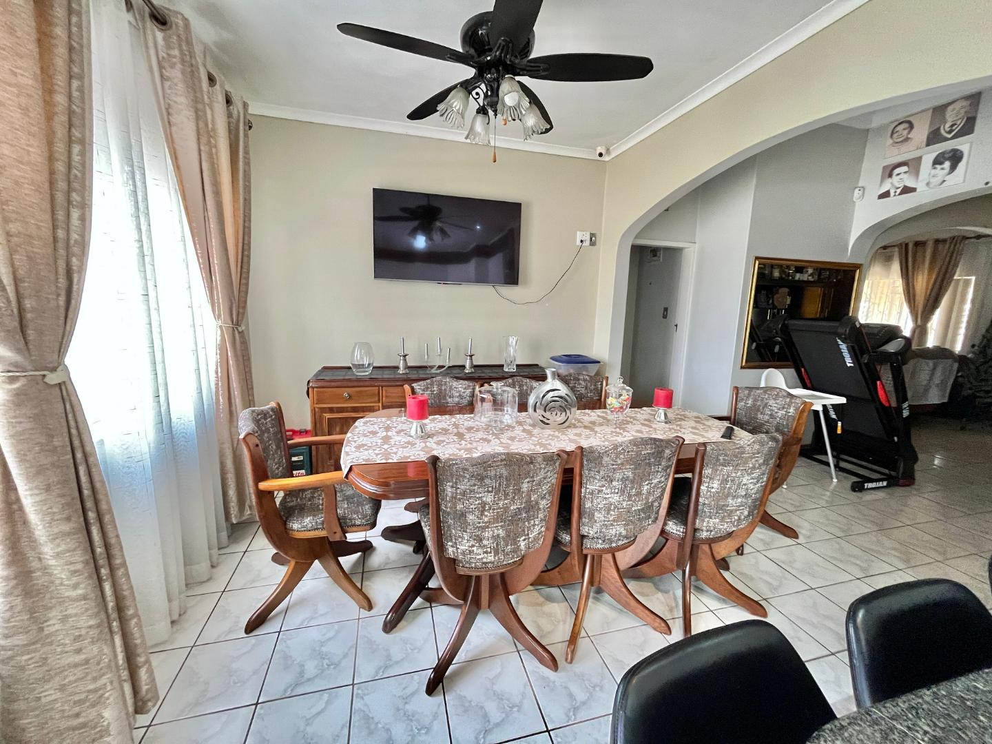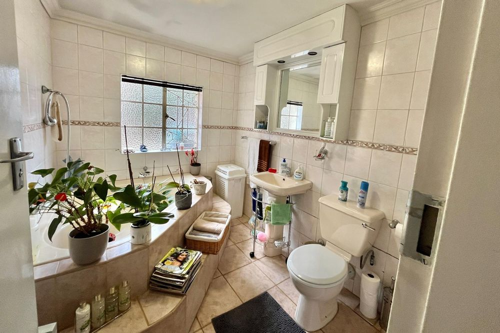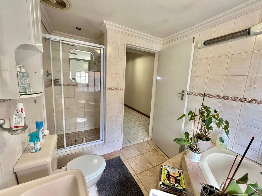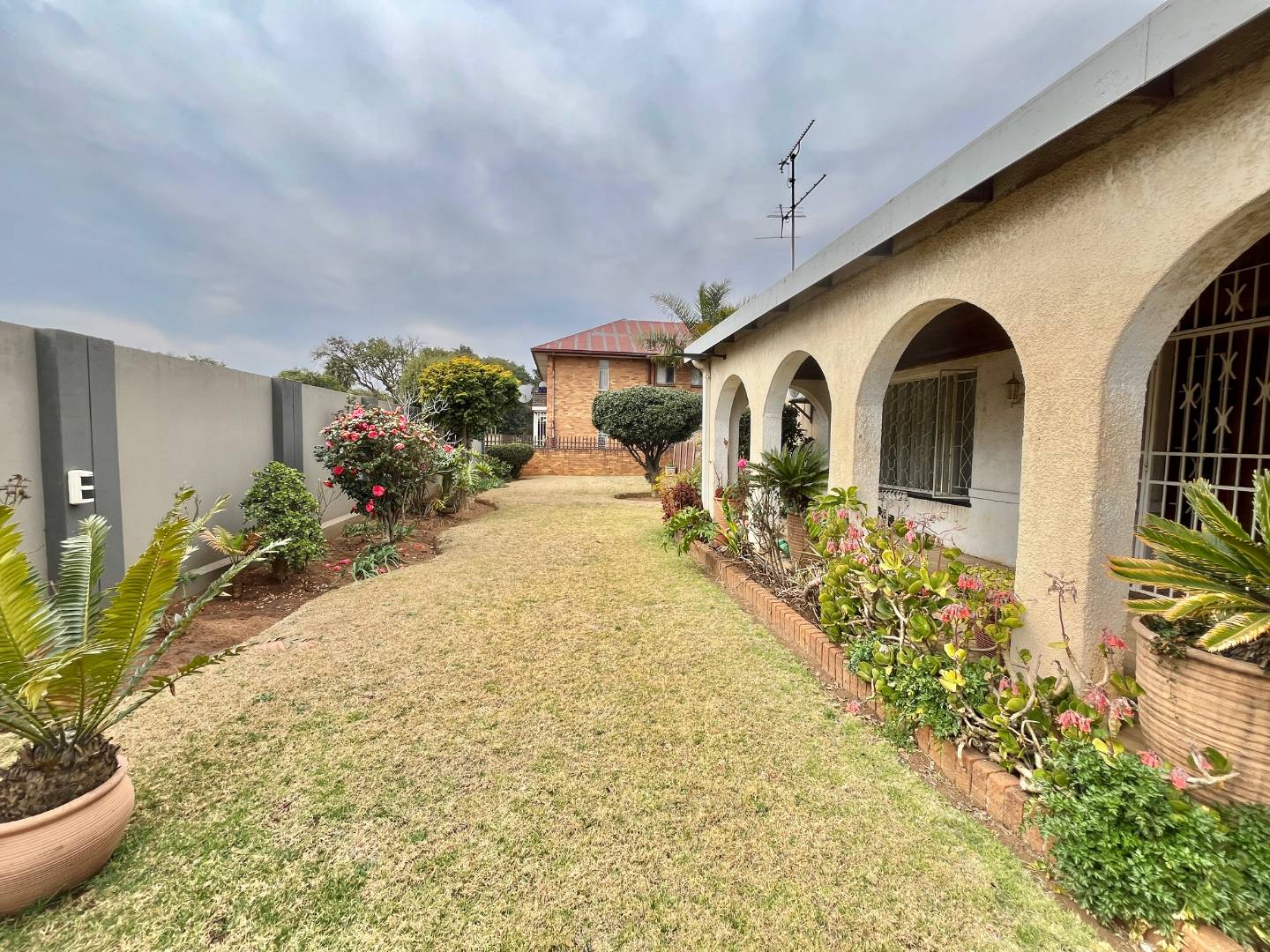 The property's well-established garden is level and meticulously maintained, providing a serene outdoor oasis. Security is a priority, with 1.8-meter walls surrounding the property, along with burglar bars and security gates ensuring peace of mind.