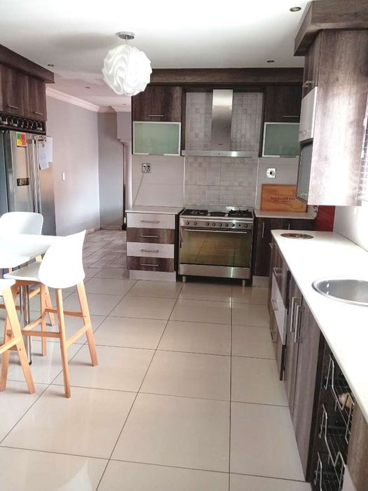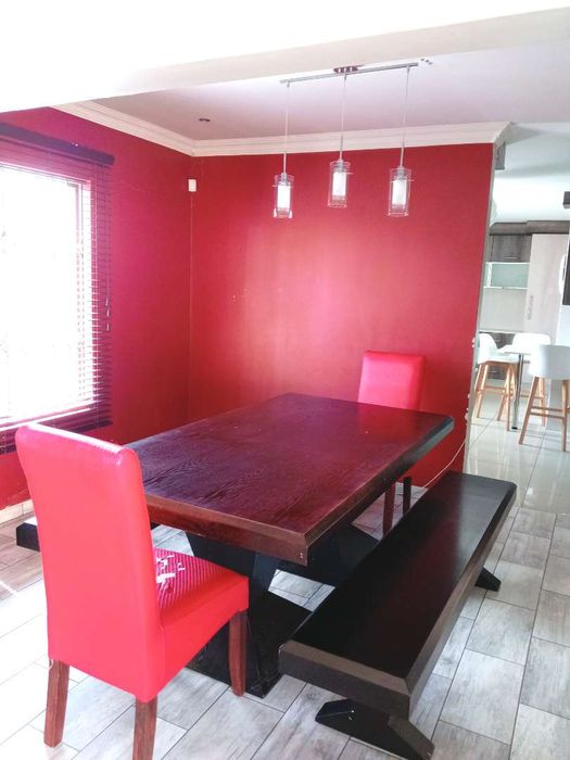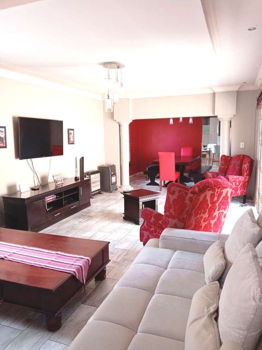 Family-friendly home a short walk to Elspark High School, with expansive flat gardens and a thatched lapa for entertaining beside a marbelite pool. Three bedrooms, two baths.