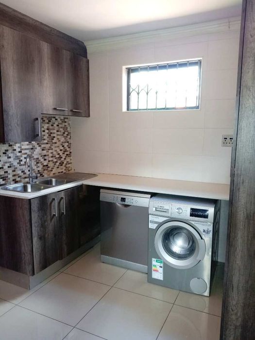 Private suburban retreat with a large level garden, high security (CCTV, electric fence, armed response), open-plan living and kitchen, plus three garages and three bedrooms.