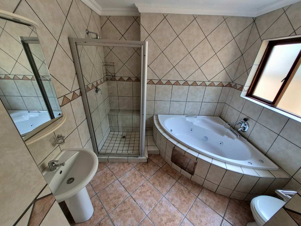 Step inside to discover a beautifully designed open-plan kitchen, complete with elegant granite countertops and a separate scullery. The kitchen seamlessly flows into a spacious lounge area, which then opens onto a covered patio. This inviting outdoor space includes a built-in braai and overlooks a well-maintained garden, perfect for entertaining or relaxing.