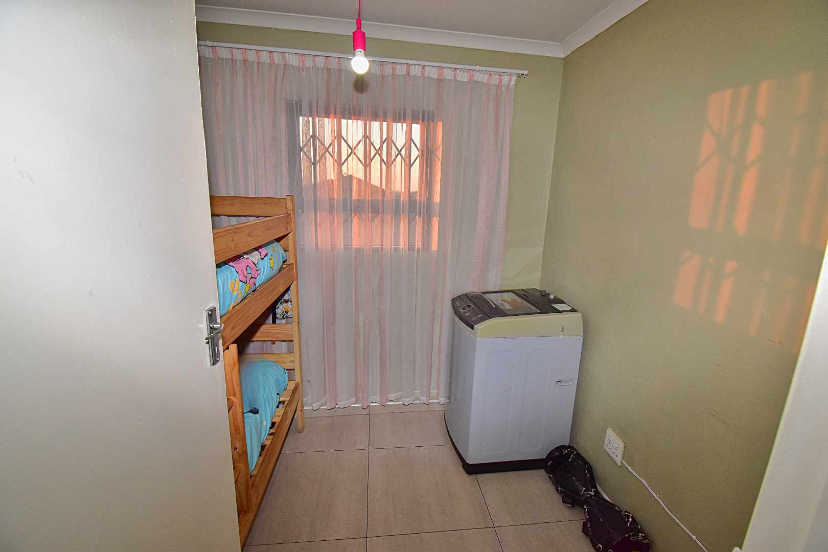 Welcome to this charming 3-bedroom home that boasts built-in cupboards in each room, providing ample storage space for your belongings. The property features 2 bathrooms, one of which is en-suite for added convenience. Step outside to enjoy the well-maintained garden and a dedicated braai section, perfect for entertaining guests or relaxing outdoors.