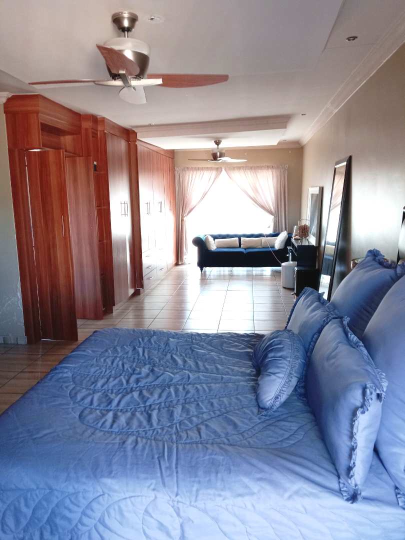 The main bedroom is exceptionally spacious and features built-in cupboards and an en-suite bathroom. The en-suite includes a luxurious double shower, bathtub, basin, and toilet. Additional bedrooms come with built-in cupboards, and one also has an en-suite bathroom equipped with a shower, bathtub, basin, and toilet. Two other bedrooms are well-appointed with built-in cupboards.It also has automated double garage.