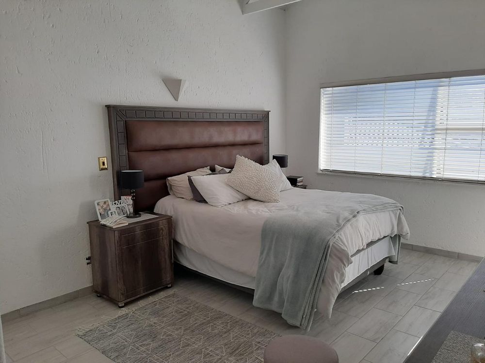 The modern kitchen is equipped with sleek finishes off high-quality, making it a delight for both cooking enthusiasts and those who enjoy entertaining. The lounge seamlessly extends to a large patio, featuring a built-in braai, ideal for hosting gatherings and enjoying outdoor meals with family and friends.