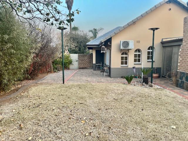 Adjacent to the kitchen, you'll find a charming dining room that also opens through a sliding door onto a covered patio, ideal for entertaining. The patio features a built-in braai and roll-up canvas walls, ensuring year-round enjoyment. The well-designed kitchen boasts granite countertops, melamine cupboards, a breakfast nook, and connection points for a dishwasher or washing machine. Additional features include a pantry cupboard, separate scullery, four-plate electric stove, extractor fan, and under-counter oven, all complemented by tiled floors and walls.
