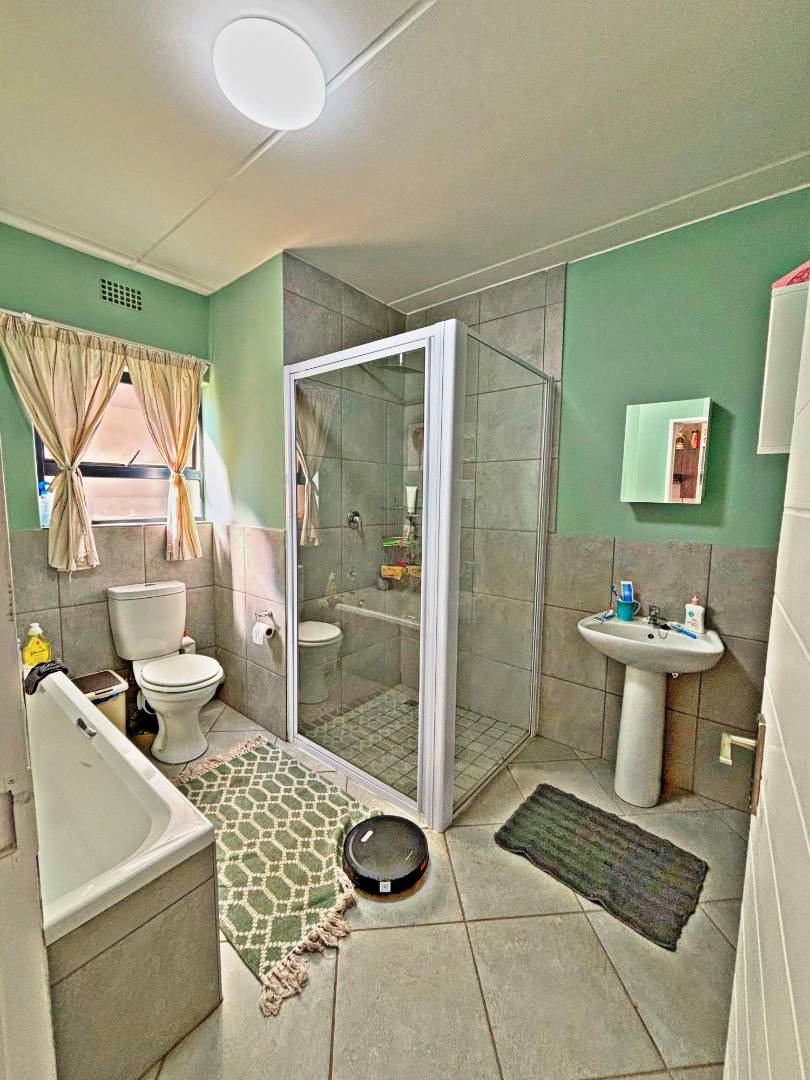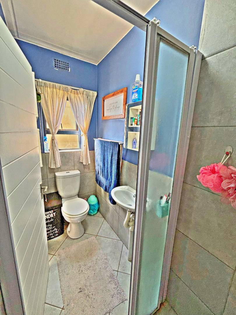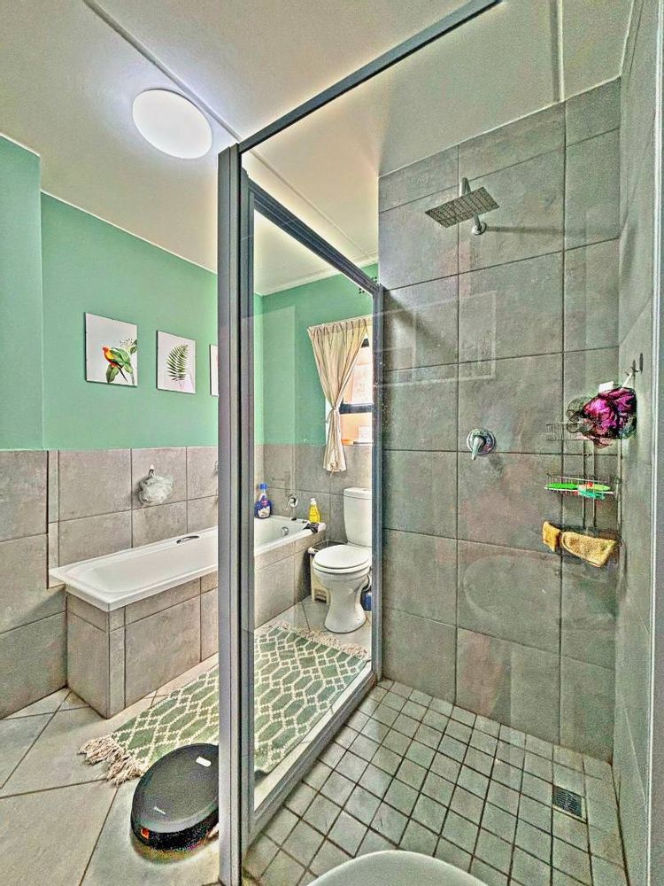 Finally, the home features a beautifully modern bathroom with a luxurious bath and a spacious glass shower. The bathroom also includes a toilet and basin, along with plenty of vanity space to accommodate all your needs.