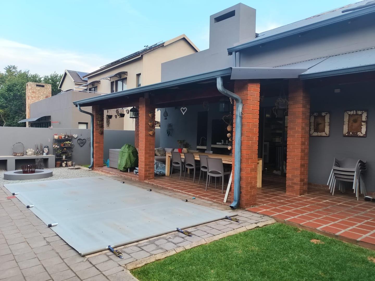 The four-bedroom home is situated in an incredible lifestyle estate. Positive aspects include its location in a secure area, featuring a clubhouse and restaurant/shops with great views. Three of the bedrooms are on one side of the home, while the fourth bedroom, which includes an en-suite, is separate on the other side. The open-plan lounge, dining area, and kitchen are designed for a family to enjoy moments together. It also has a private back garden with a pool, braai, and patio area. The home offers a solar system and includes two garages. Excellent features of the area are its location and security.