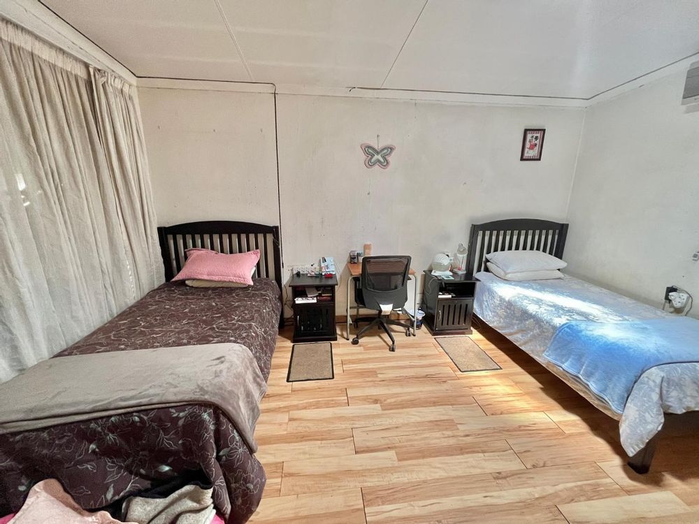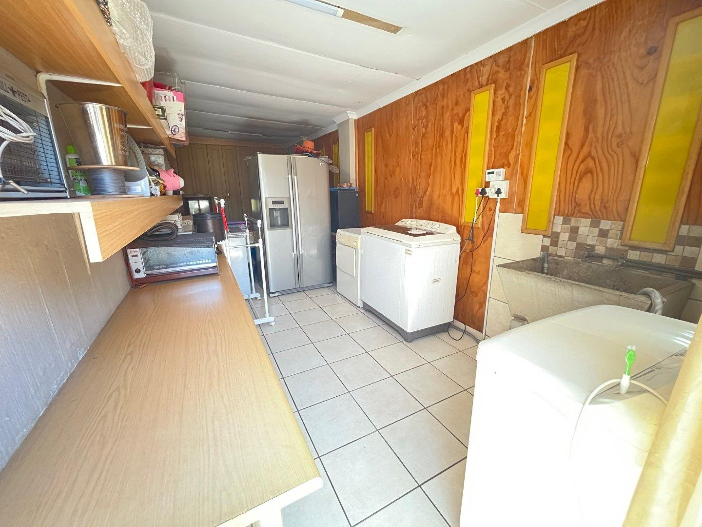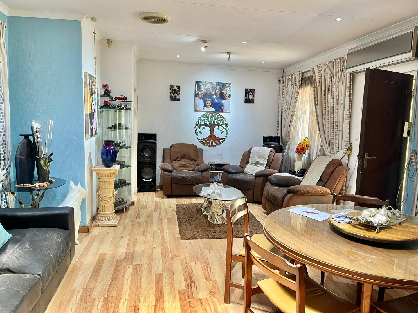 Car enthusiasts or families will appreciate the double garage with motorized doors providing direct entrance to the house, as well as an adjacent carport and open parking options. The level, neat, and established garden is enclosed by 1.8-meter walls, ensuring privacy and security.