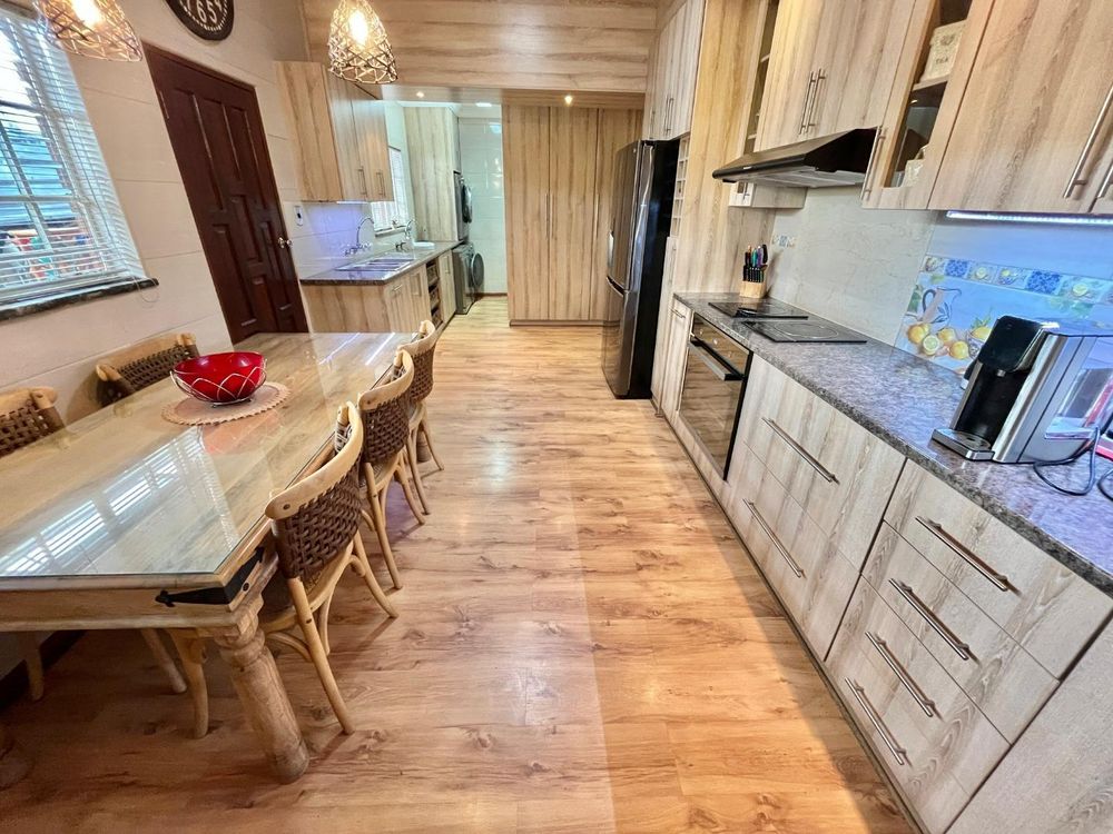 Located in a boomed-off enclosed area, this property ensures peace of mind with burglar bars and security doors. An exterior braai area and lapa provide perfect settings for outdoor entertaining. The home is equipped with fibre internet connection for modern connectivity needs. Additionally, there's an outside storeroom for extra storage.