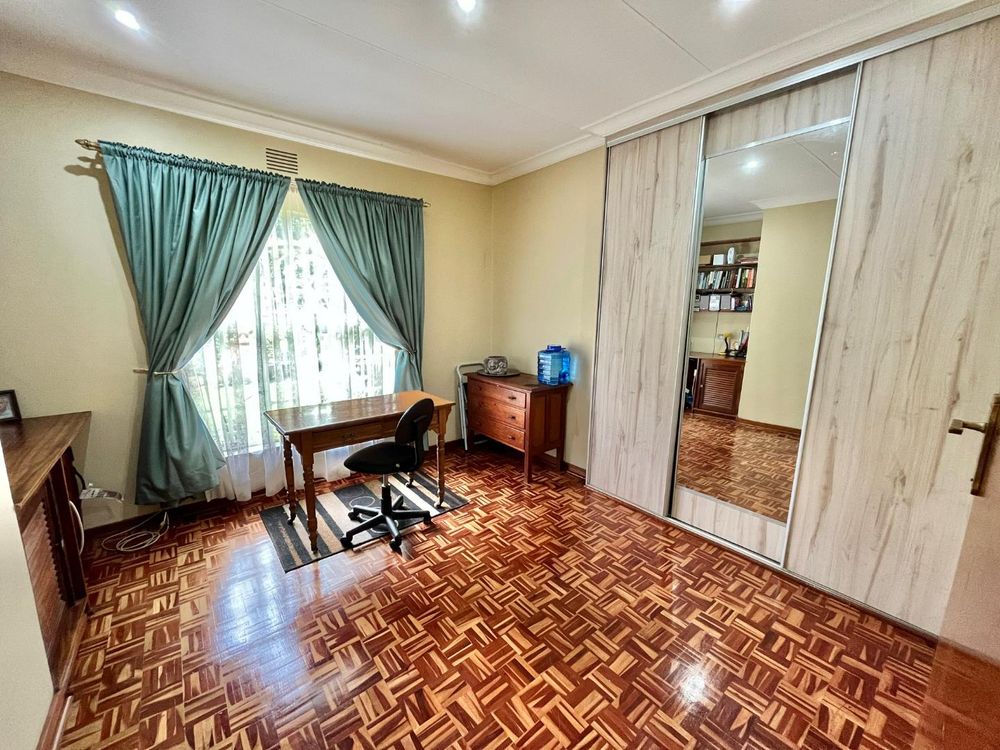 This home offers four generously sized bedrooms, each equipped with built-in cupboards that include sliding doors and mirrored fronts. The main bedroom is exceptionally spacious. All bedrooms are fitted with parquet floors, providing consistency and elegance throughout.