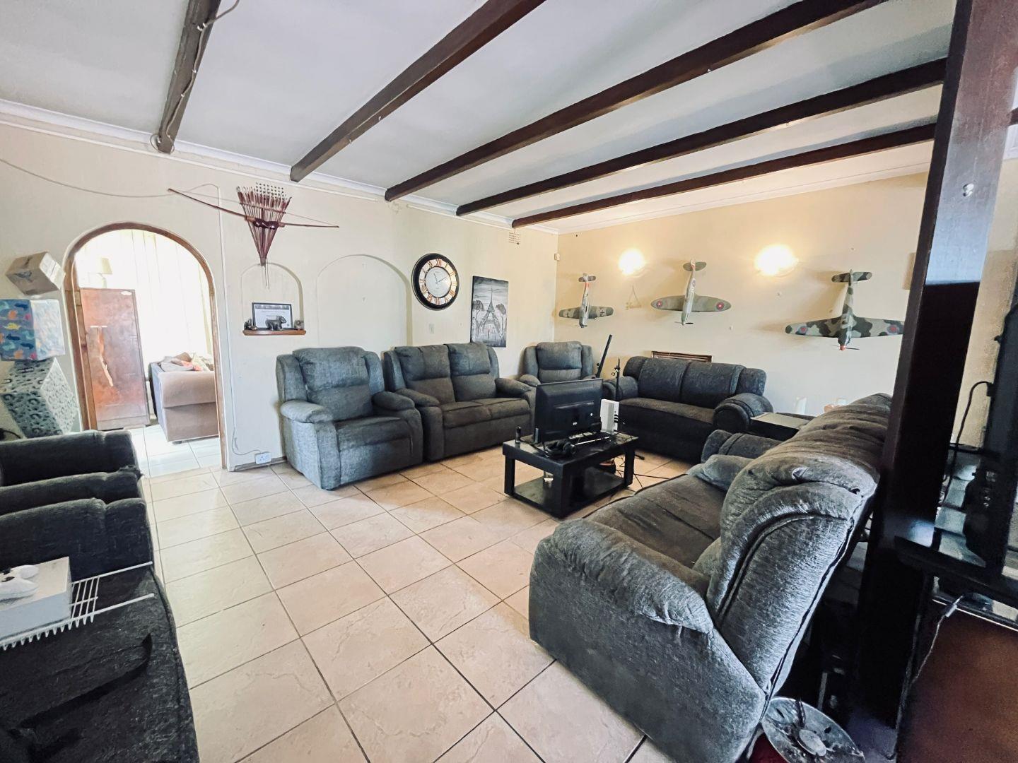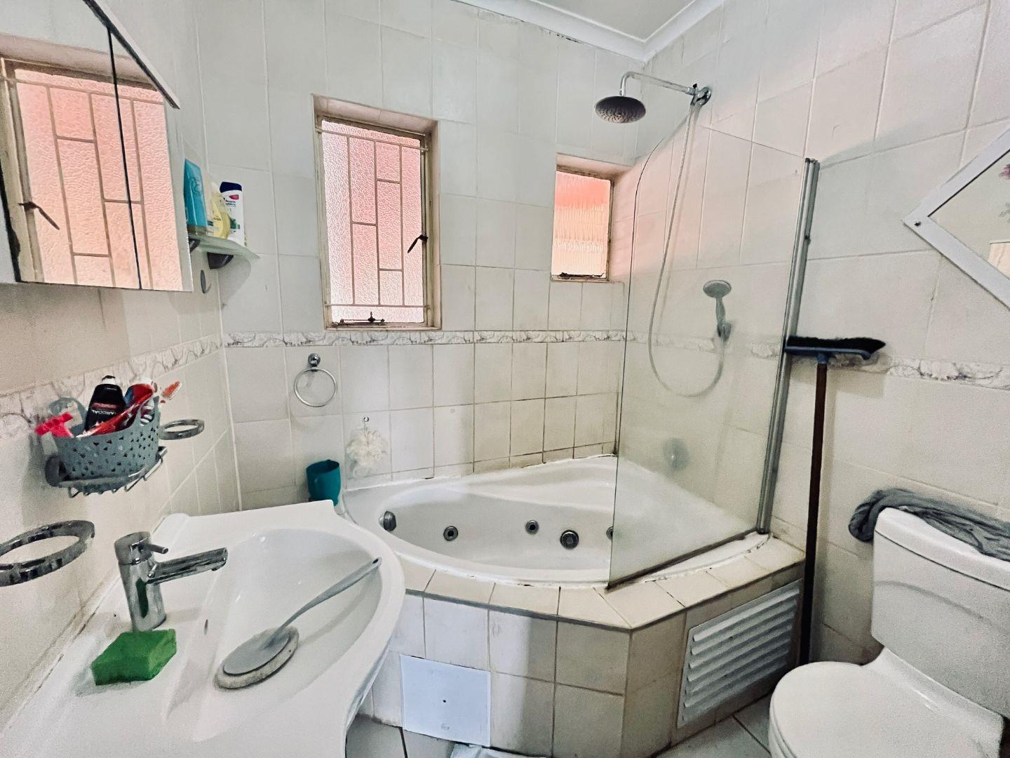 Four Steel cupboards, tiled floor and walls, small four plate gas stove, double basin sink, Pantry cupboard, curtain rails bathroom which 3 is en suite bathrooms