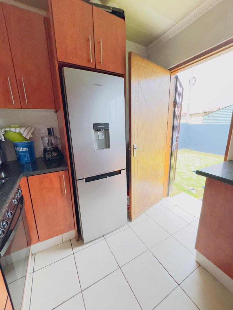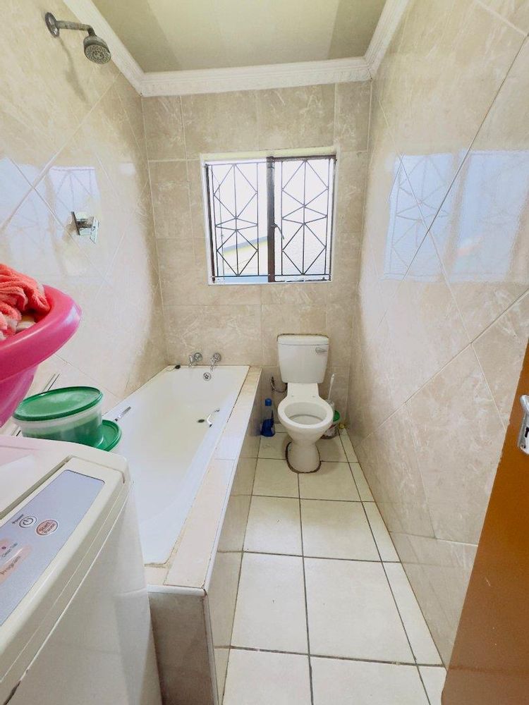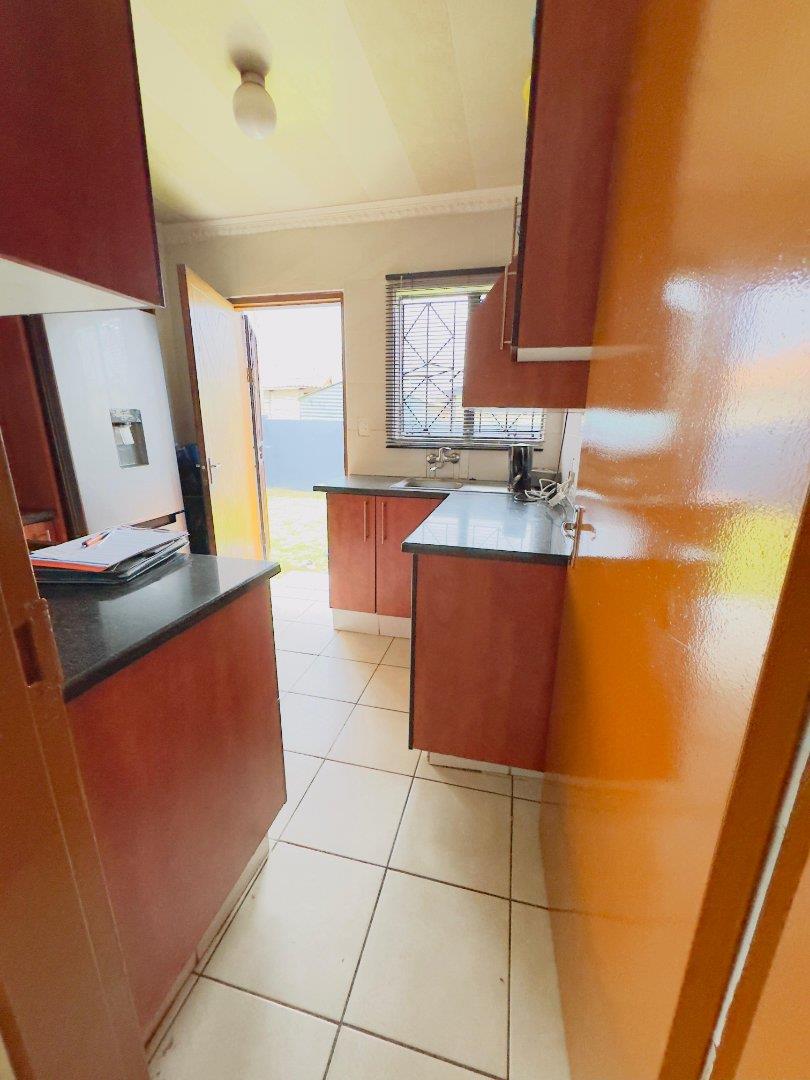 Three bedrooms all fully furnished with BIC, two bathrooms one is en-suite wall tiled to the ceiling and the other half wall tiled. Kitchen furnished with modern BIC granite top four plate stove under counter oven extractor wall tiled to the ceiling, one spacious lounge. Single garage with four open car parking space and big garden.