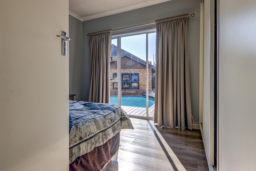 Both the family room and entertainment area lead onto the covered patio and braai area. In the neat garden, there is a playhouse for the children to enjoy, two handy storerooms and an outside bathroom.