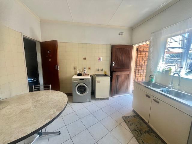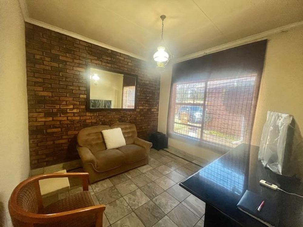 Nestled within a secure, enclosed boomed area with access control, this home provides peace of mind with security doors and burglar bars on open windows. Step inside to find an inviting open-plan lounge, TV room, and dining room, all adorned with tiled floors. Some rooms feature fitted blinds while others have curtain rails, offering a touch of elegance and versatility.