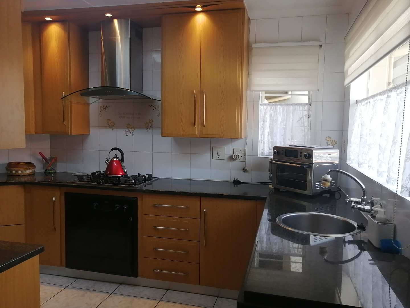 The heart of the home is a beautiful, modern kitchen equipped with granite countertops, a gas hob, under-counter oven and an efficient extractor fan. Adjacent to the kitchen, you'll find a separate scullery and laundry room, adding convenience to your culinary and cleaning needs.