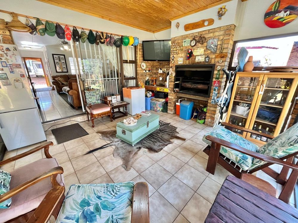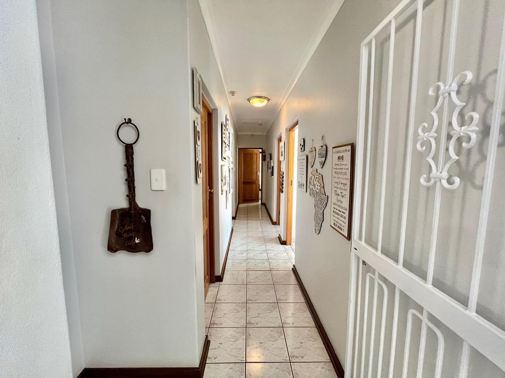 Safety is paramount in this home located in a closed-off area equipped with security gates, burglar bars, an electric fence, CCTV cameras, and strategic day and night lighting to ensure peace of mind.