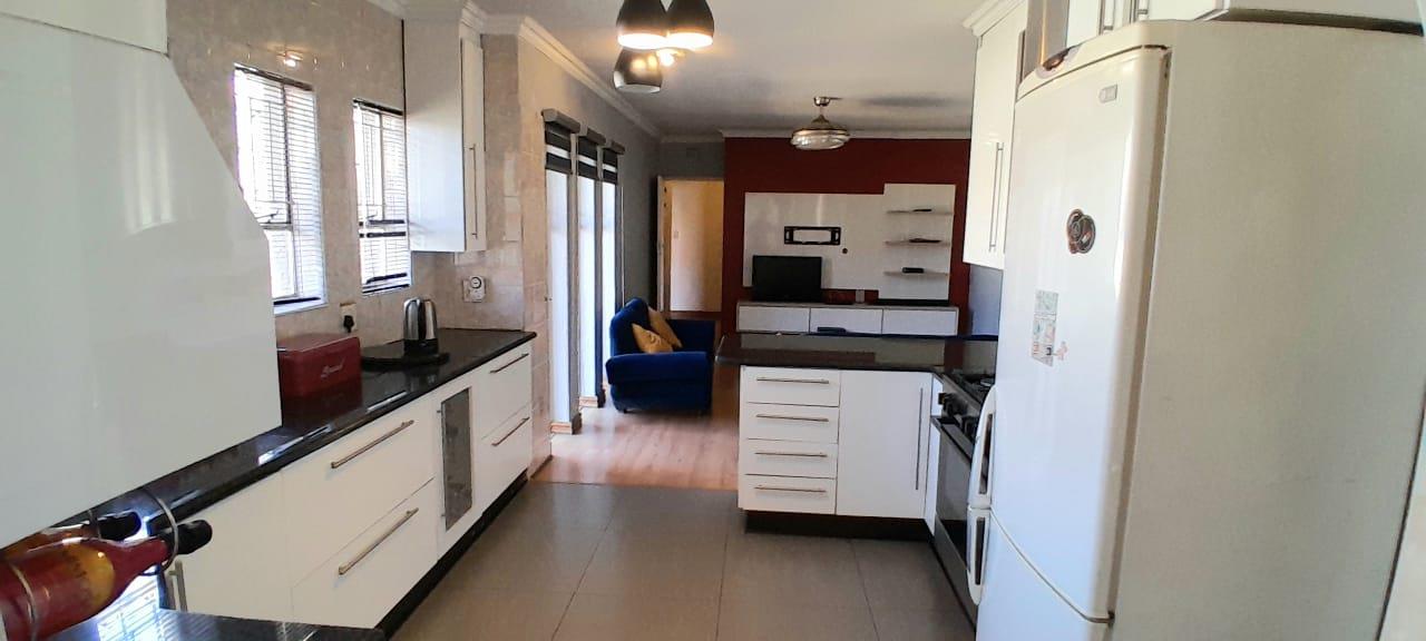 Welcome to this stunning family home, a true entertainer's delight. This property boasts a modern kitchen with elegant tiled floors, a convenient breakfast counter, and sleek granite countertops. Cooking is a pleasure with the five-plate gas stove, under-counter oven, and extractor fan. The kitchen also features a single basin for easy hand washing while cooking. A separate scullery adds practicality with its double sink, shelved pantry, and space for your electrical appliances.