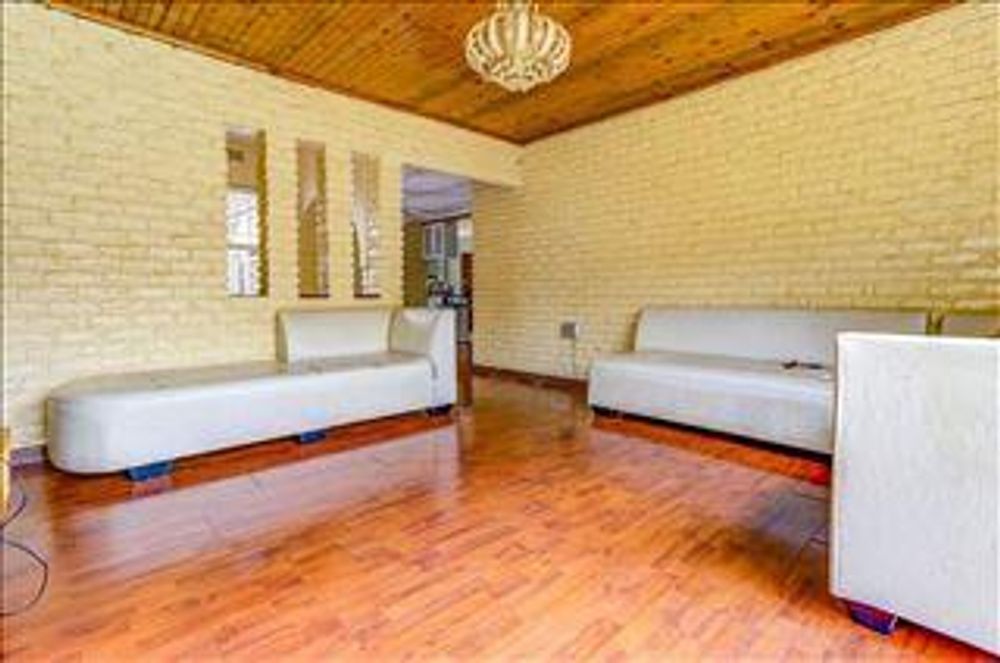 Step inside to discover a large open-plan lounge and dining room, featuring elegant wooden flooring that adds warmth and sophistication to the home. The seamless flow into the kitchen creates an inviting space for both everyday living and entertaining. The kitchen is equipped with melamine units and offers ample storage and countertop space. Adjoining the kitchen is a convenient scullery with a double sink, perfect for handling all your culinary needs.