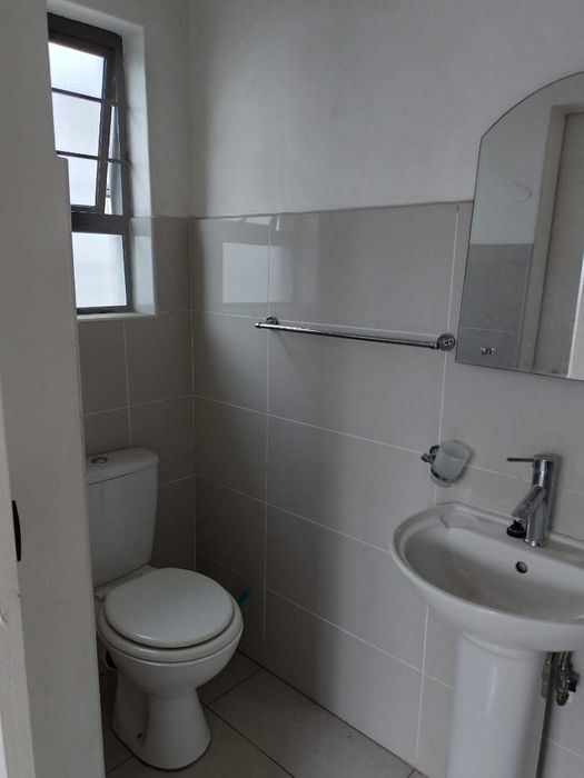 Newly painted 2-bedroom upstairs unit with 1 bathroom, open-plan lounge, and stoop, available for R7,694 monthly bond repayment.