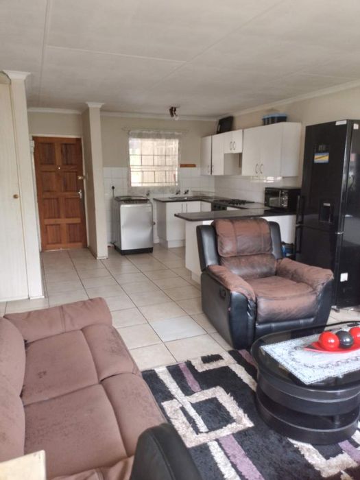 Relaxed living in a vibrant, secure complex with 24-hour guards and coded access; enjoy two pools, playground and braai. Two-bedroom, one-bath unit with open-plan lounge, breakfast counter and covered parking.