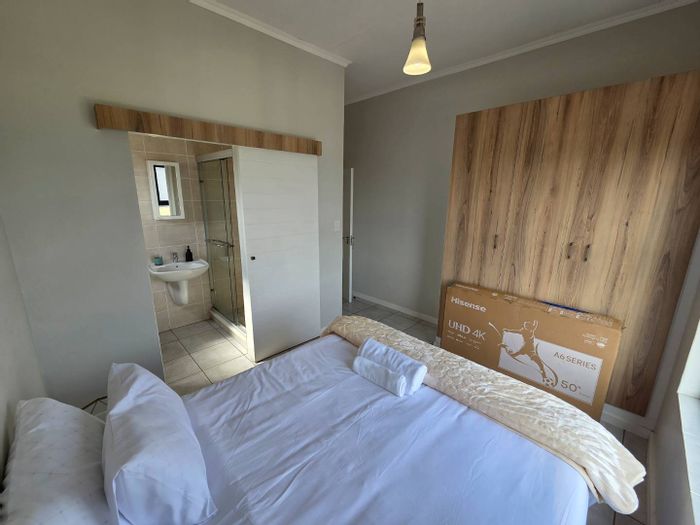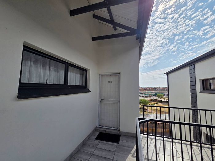 Relaxed urban living in the heart of Benoni, with an expansive balcony overlooking the complex pool and braai area. Open-plan two-bedroom, two-bath apartment with covered and open parking.